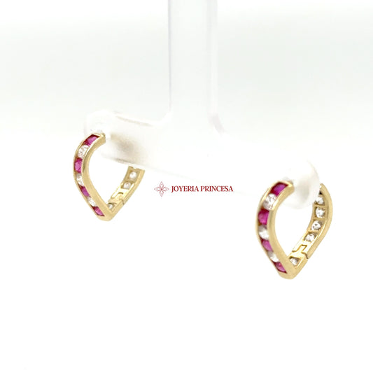 14K Gold Huggie Earrings with Ruby CZ Accents