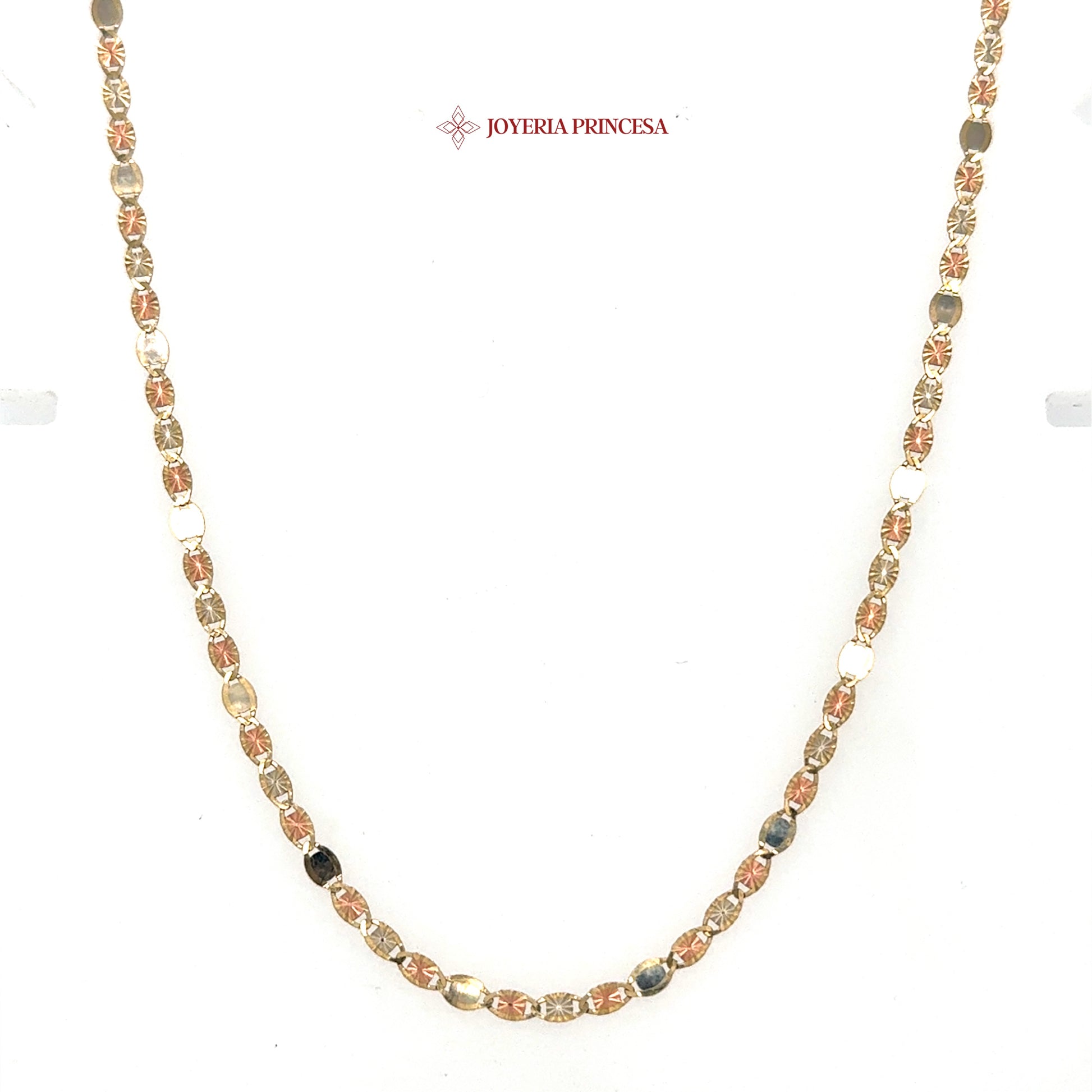 This exquisite necklace features alternating polished and textured valentino links, creating a captivating interplay of light and color for a sophisticated look.