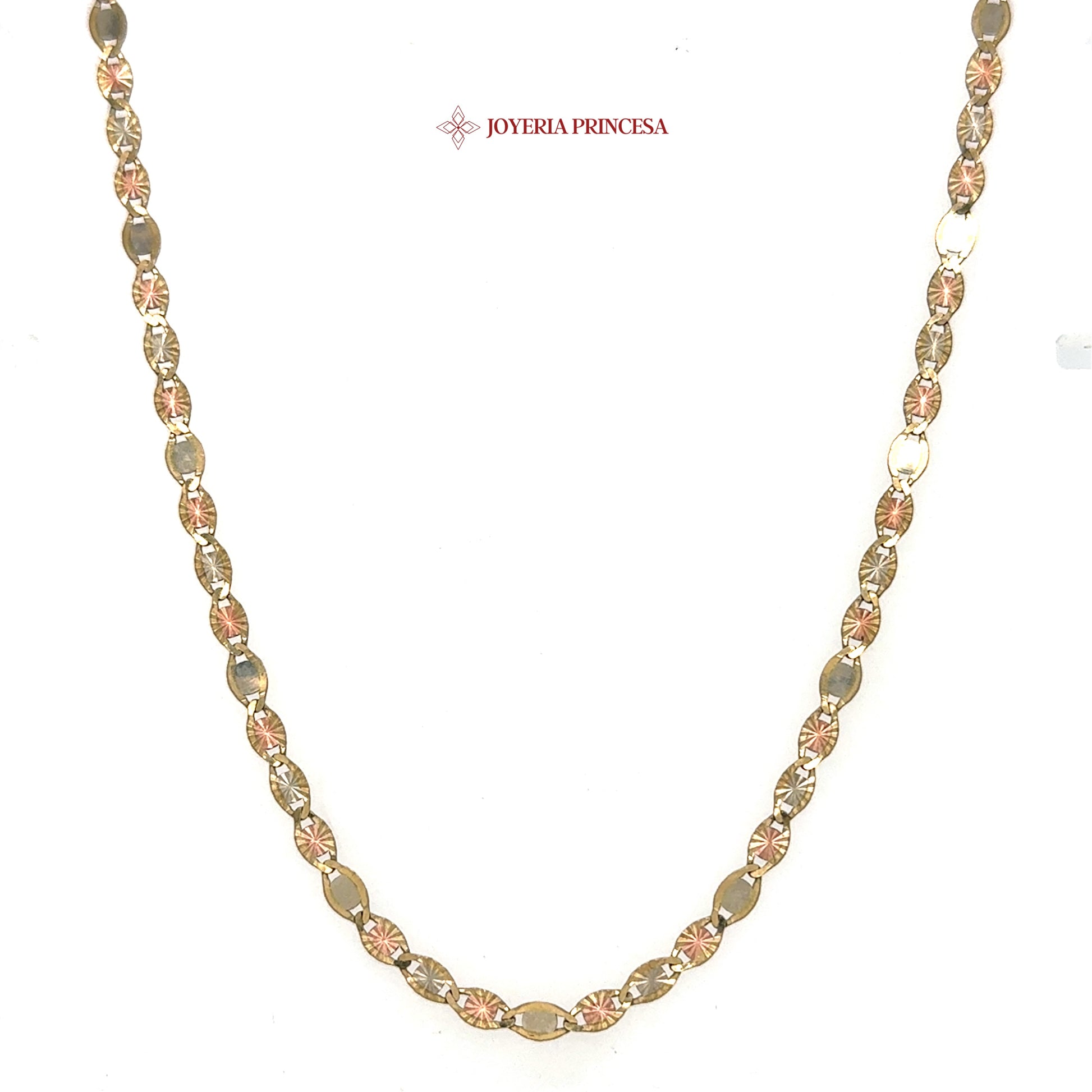 A stunning two-tone necklace featuring intricate links with diamond-cut facets, offering a radiant shine and a sophisticated design that elevates any ensemble.