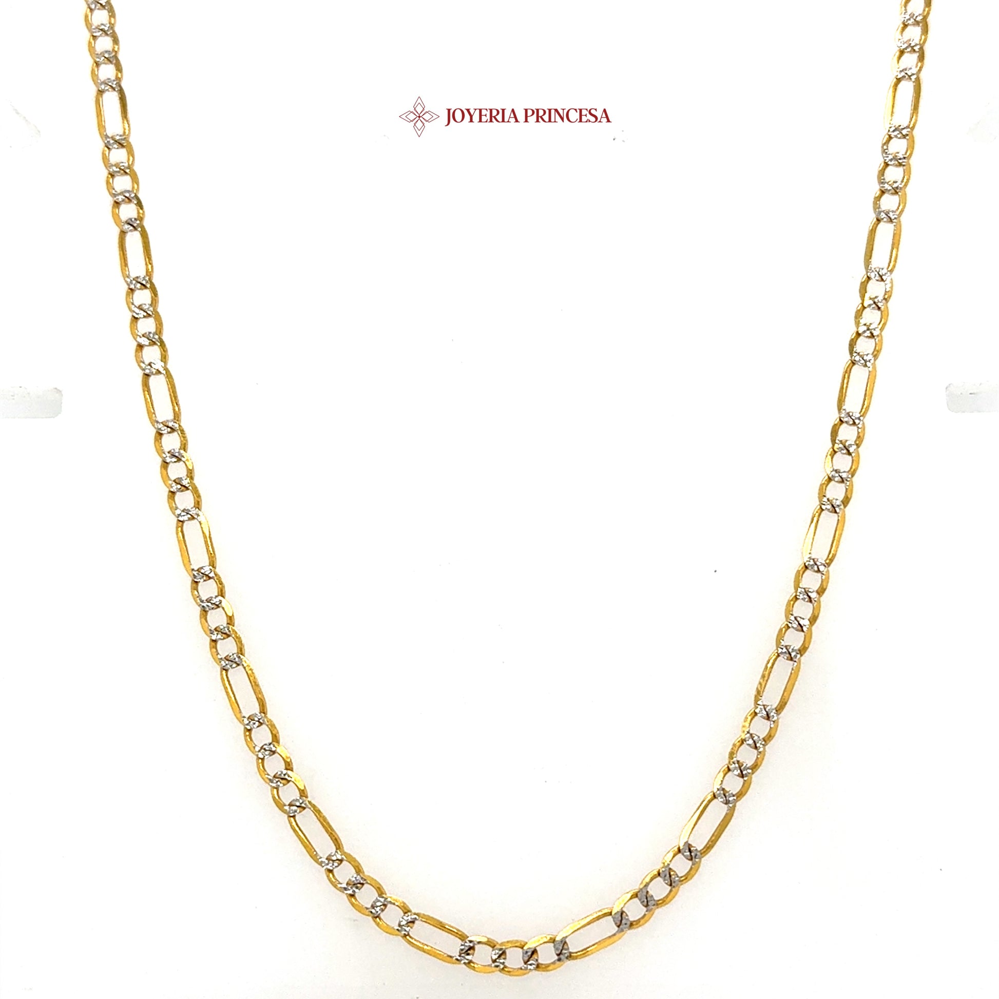 10K 24in 3.3mm Elegant Two-Tone Figaro Diamond Cut Chain