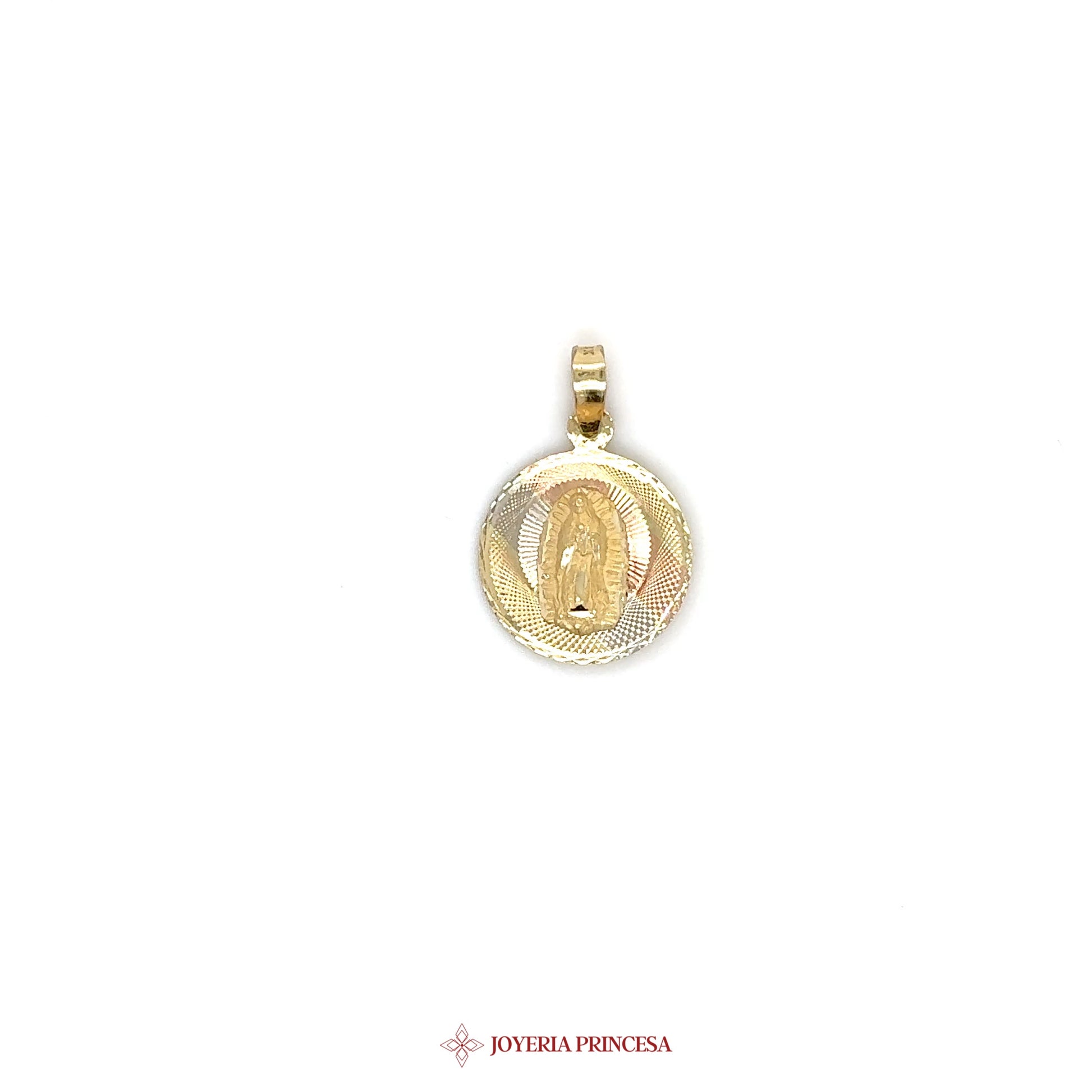 ES: Este exquisito colgante de doble cara presenta a la Virgen María de un lado y a Jesús del otro. • Fabricado en oro de 10K • Hermoso diseño bicolor en oro blanco y amarillo • Ideal para regalar con significado.