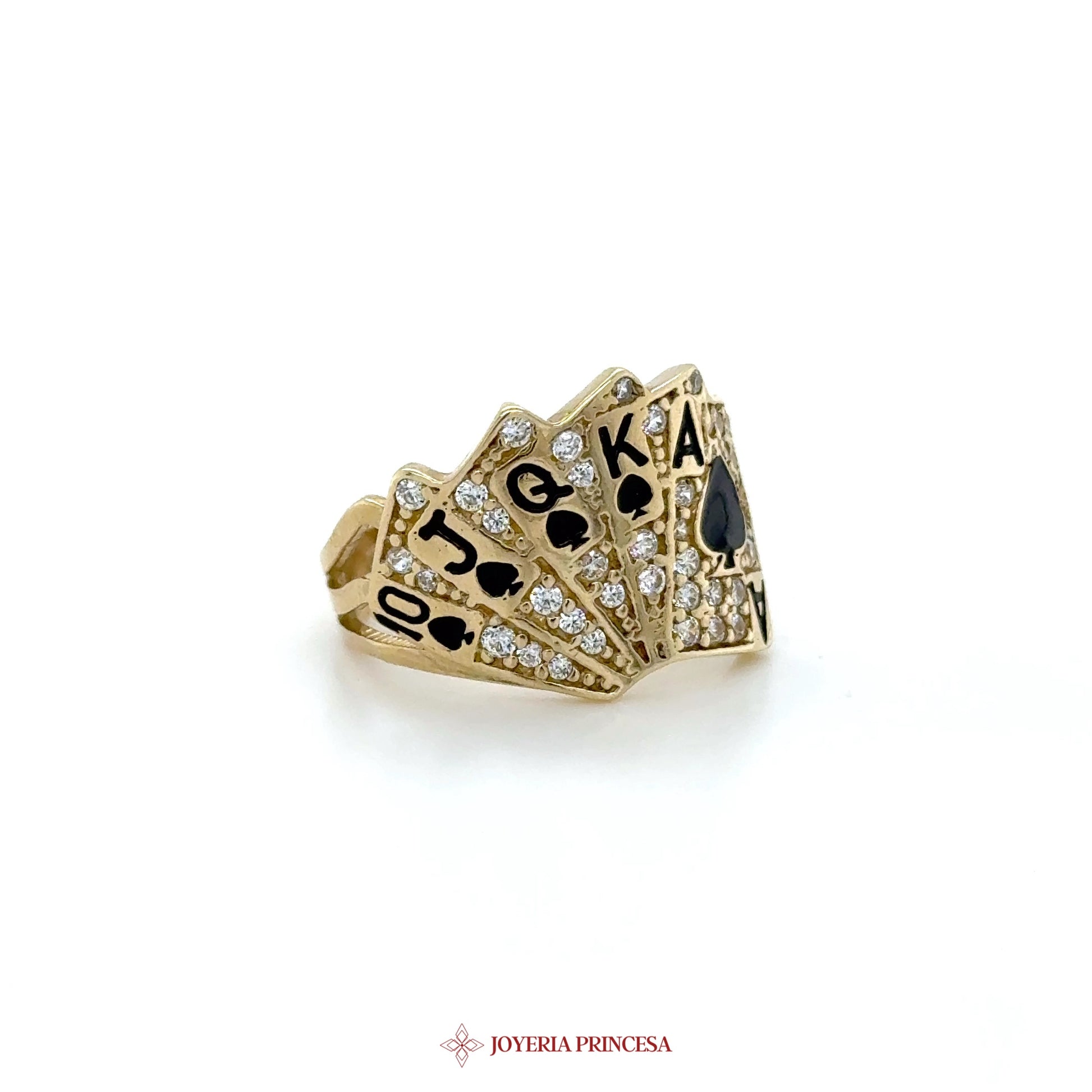 10K Gold Playing Cards Ring with CZ Stones (UN-1671)