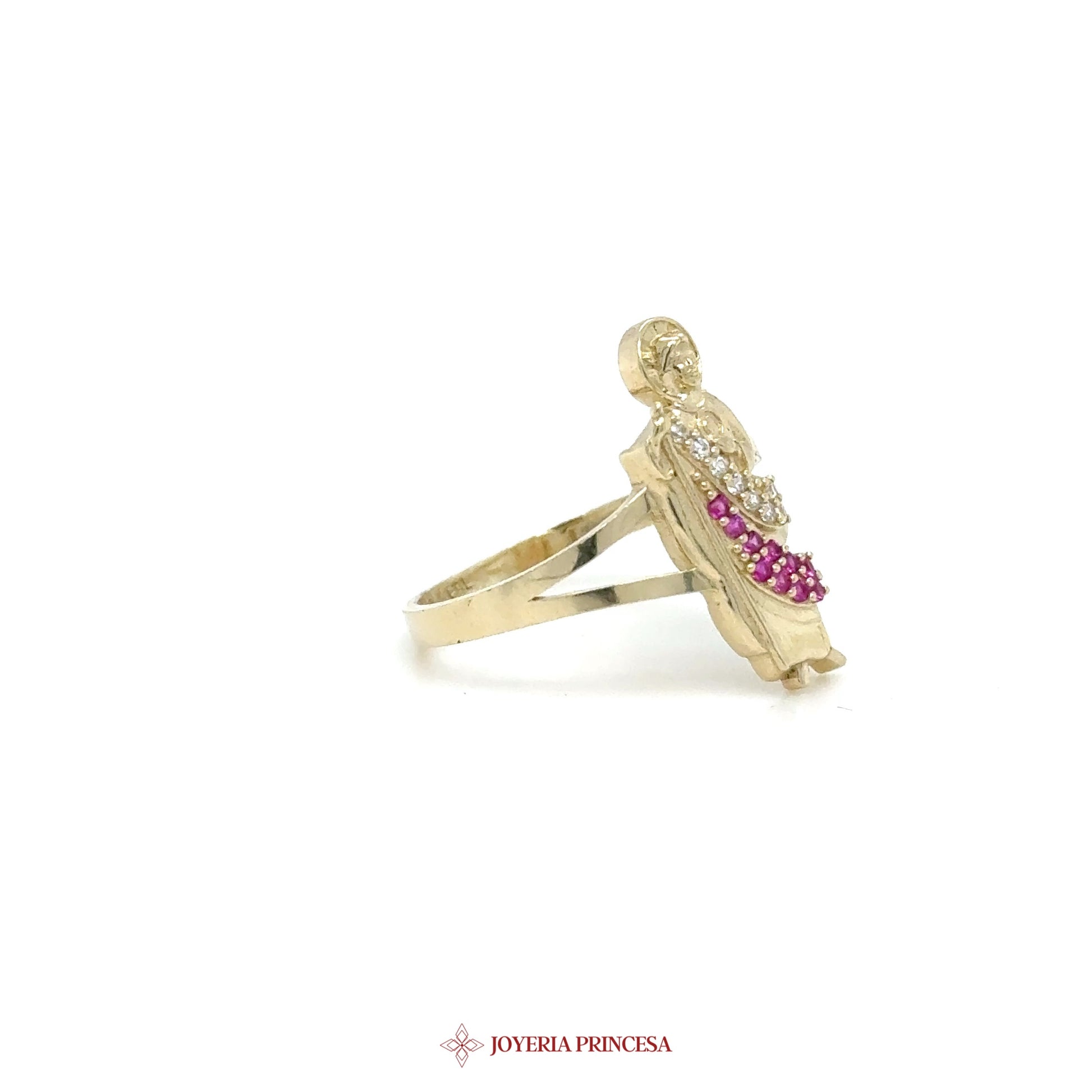 ES: Celebra la fe con este anillo único de santo en oro de 10K. • Presenta vibrantes acentos de rubí y CZ • Diseño elegante para el uso diario • Regalo perfecto para ocasiones espirituales