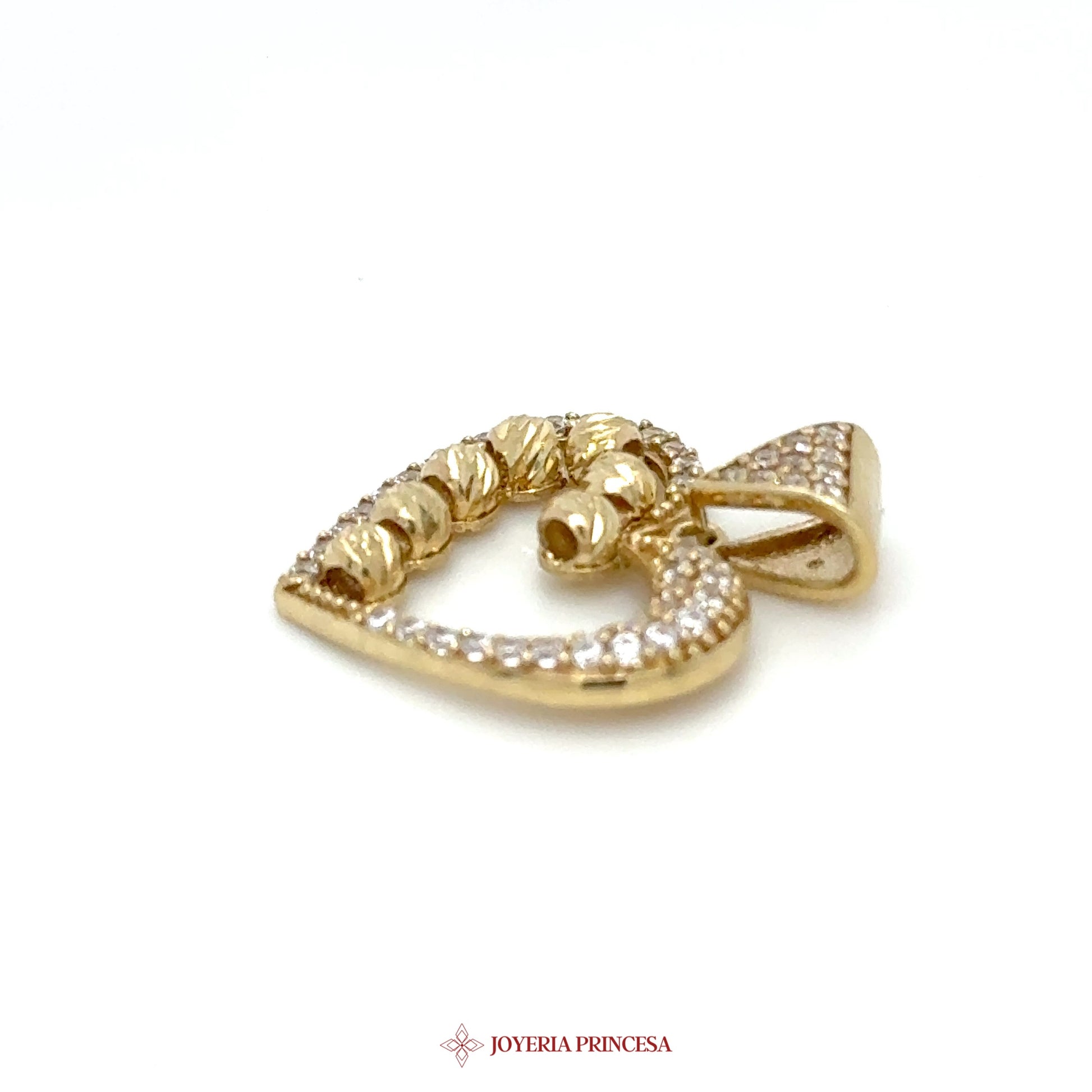 ES: Este encantador colgante en forma de corazón presenta piedras simuladas en un diseño encantador. • Fabricado en oro de 10K • Motivo de corazón con detalles brillantes • Perfecto para el uso diario o ocasiones especiales