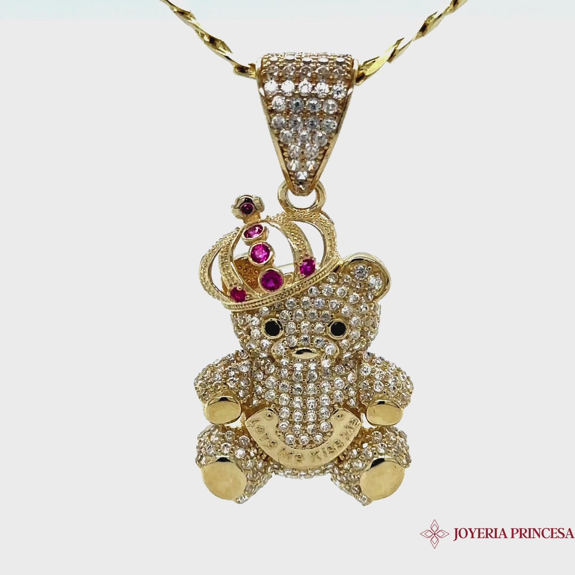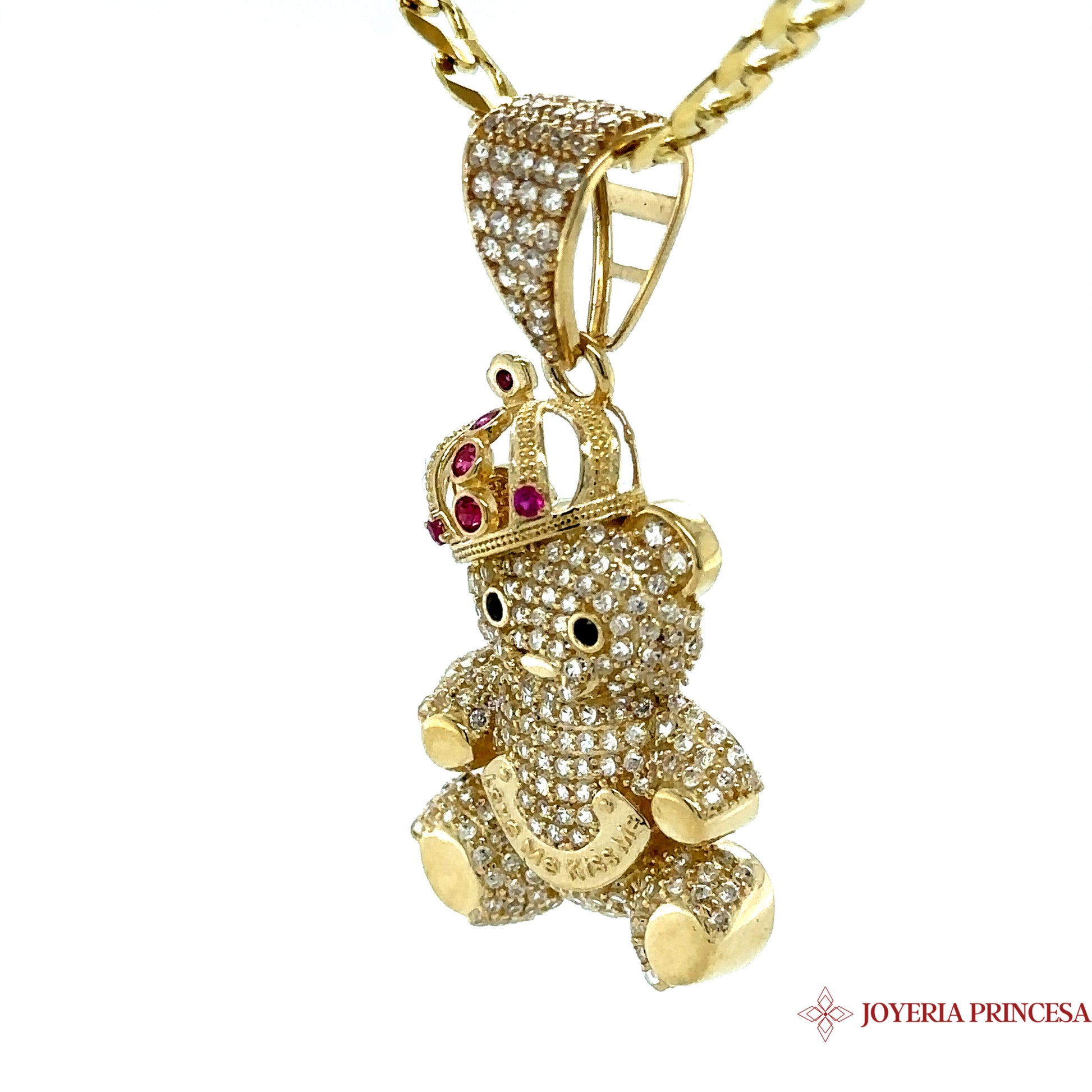 Experimente la elegancia y el juego con el Colgante Rey Oso de Peluche de oro auténtico de 10 quilates, con una corona que simboliza autoridad y afecto.