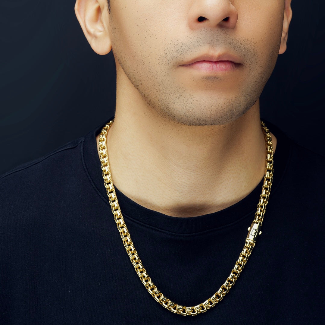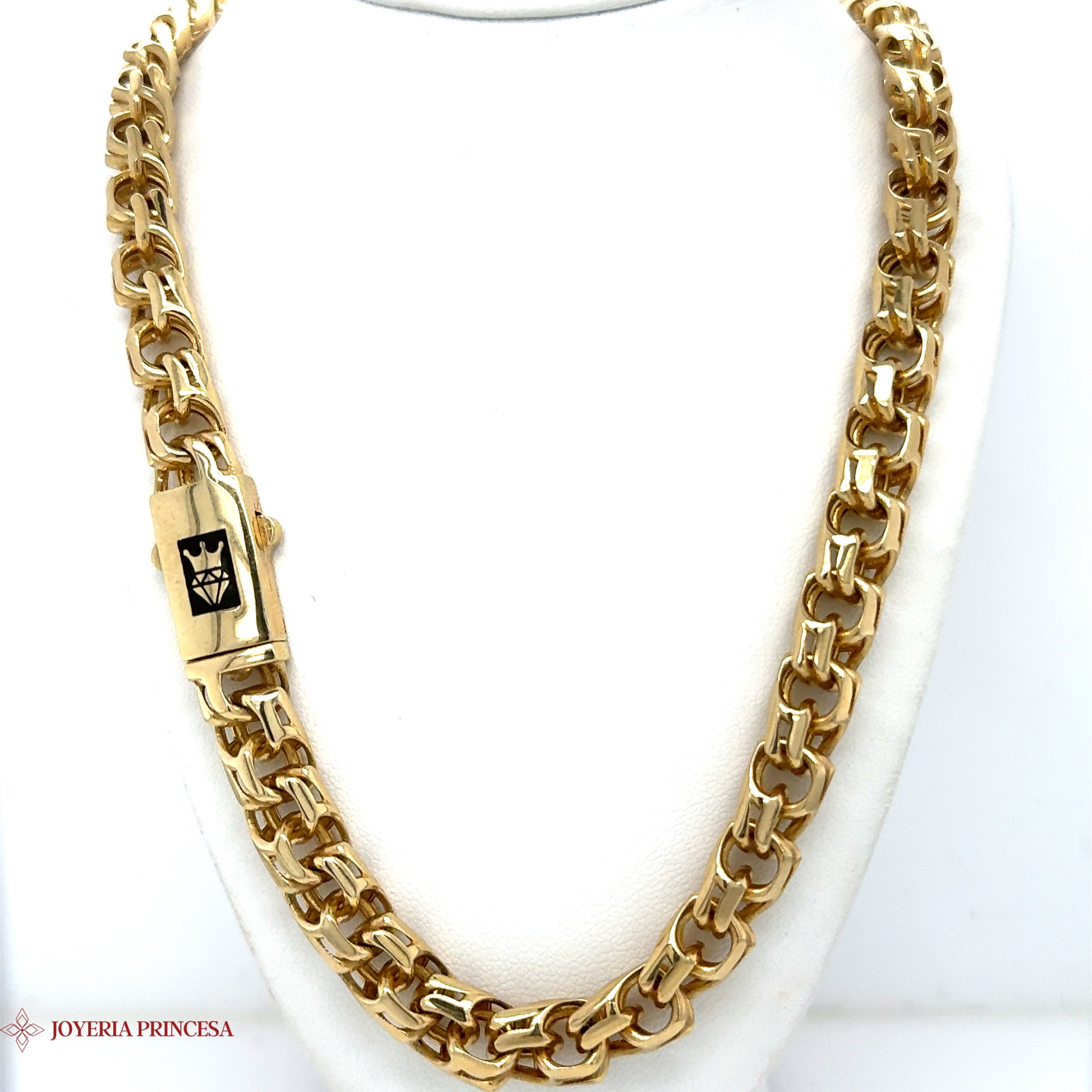 El lujoso collar de cadena de eslabones chinos semisólidos de 10 quilates aúna tradición y modernidad. Elaborado en cálido oro amarillo, con eslabones angulares estilo chino y cierre de caja con cierre de seguridad para una sensación de primera calidad.
