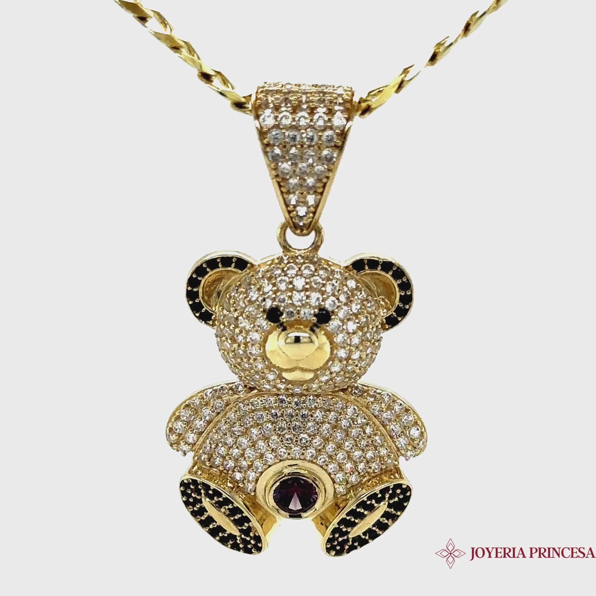 Colgante Oso de Peluche 10K Cubierto de Circonitas