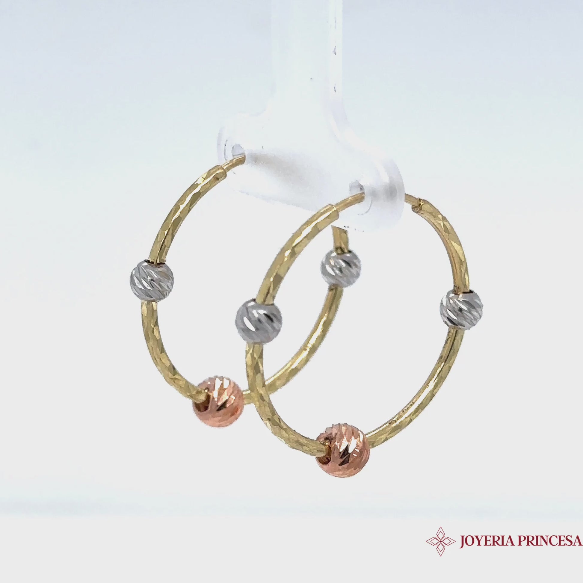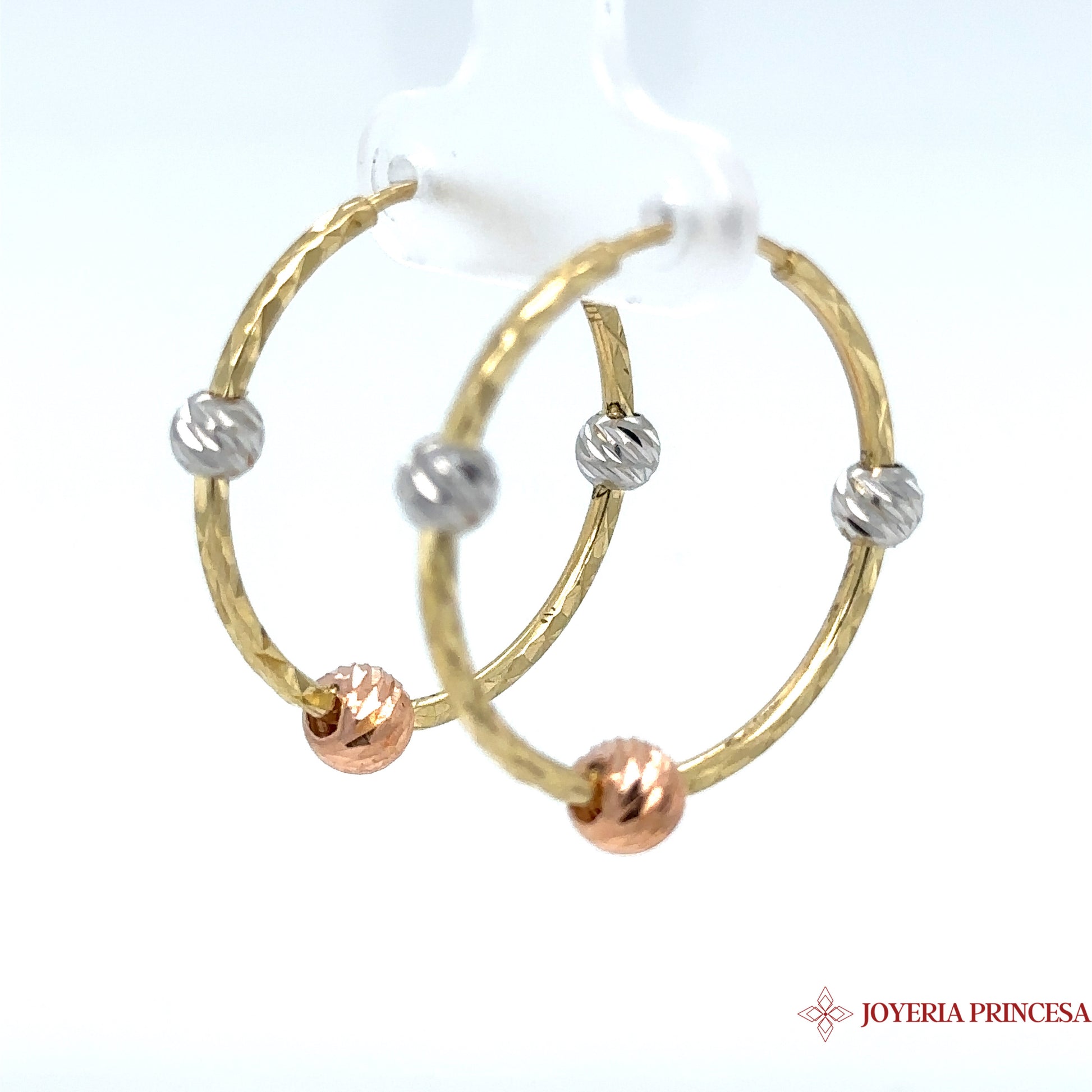 Aretes de aro tricolor 10K