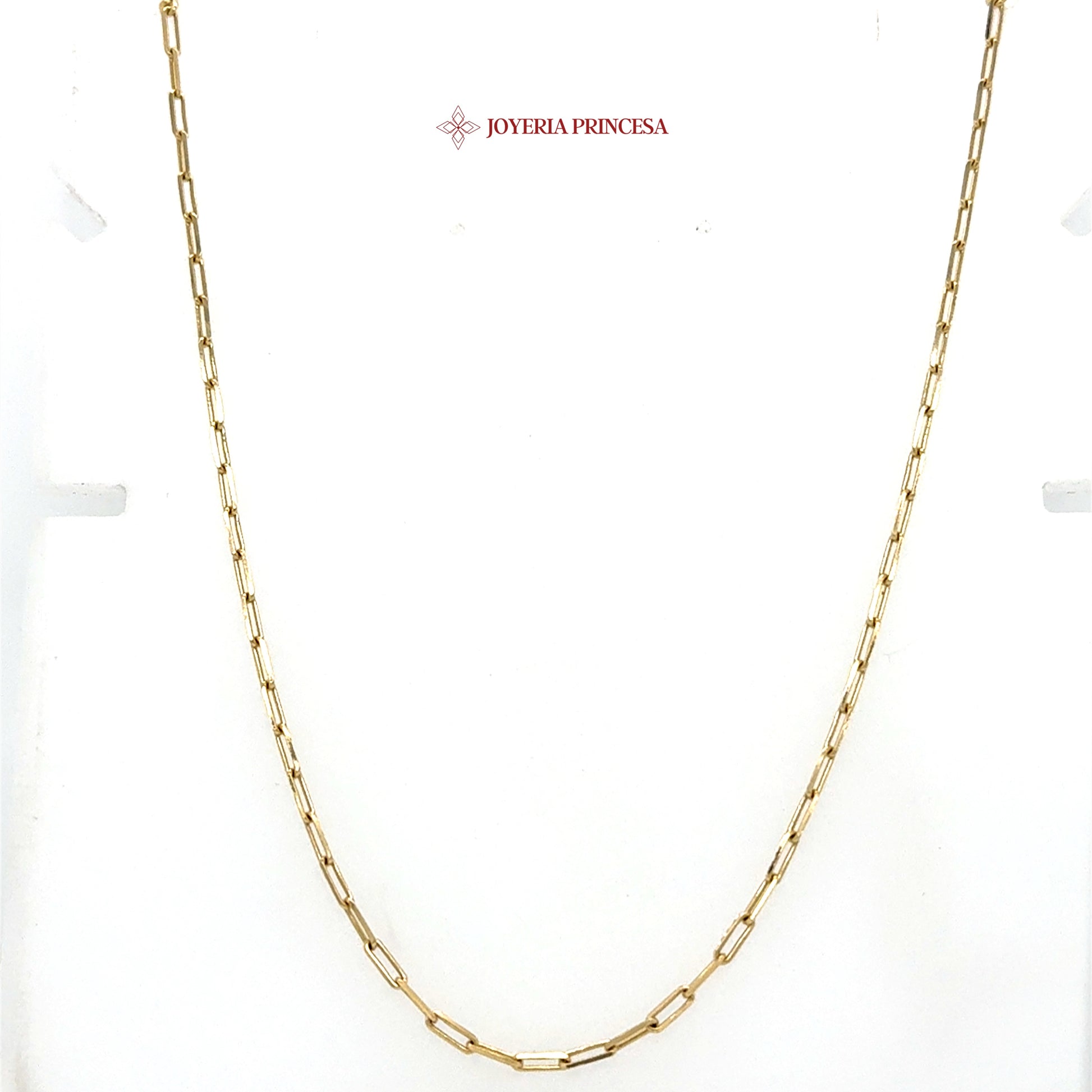 Experience the elegance of this 14K gold Paperclip chain, a modern classic that enhances any ensemble with its refined design and luxurious sheen.