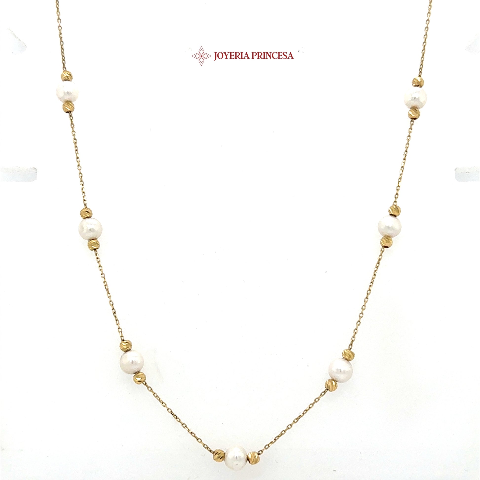 This refined necklace showcases lustrous pearls, interspersed with gold accents, creating a sophisticated and timeless piece perfect for any occasion.
