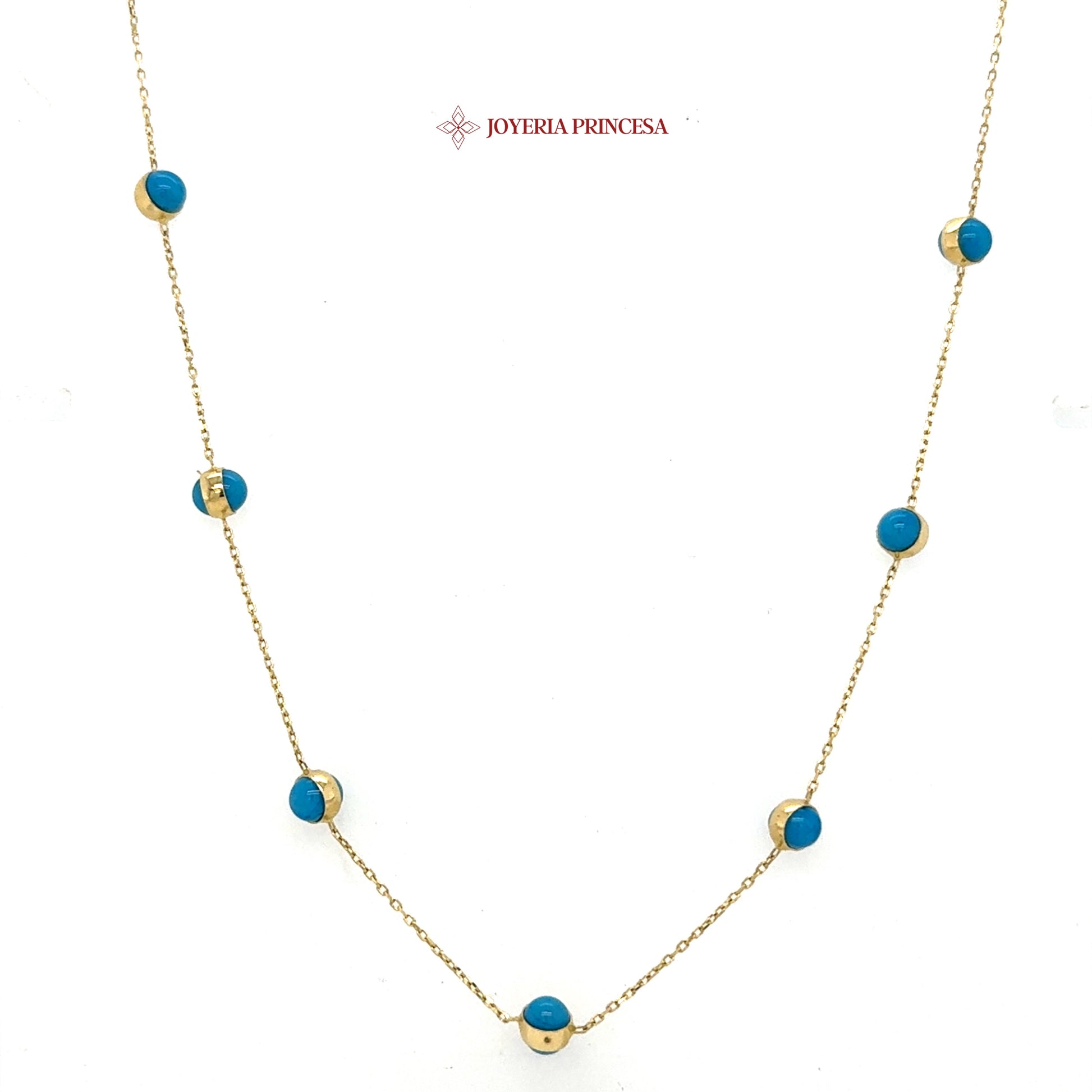 Delicate gold chain adorned with vibrant turquoise beads, effortlessly blending sophistication and color for a striking accessory that enhances any outfit.