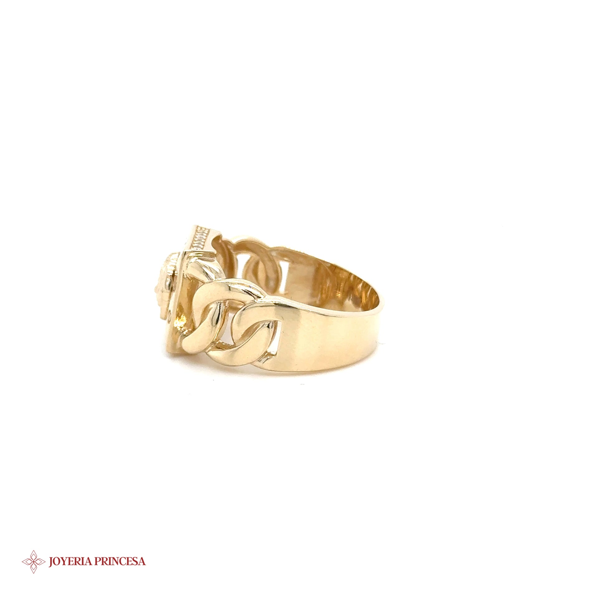 Anillo de oro de 14 quilates con un crucifijo detallado con detalles de circonitas y cruz.