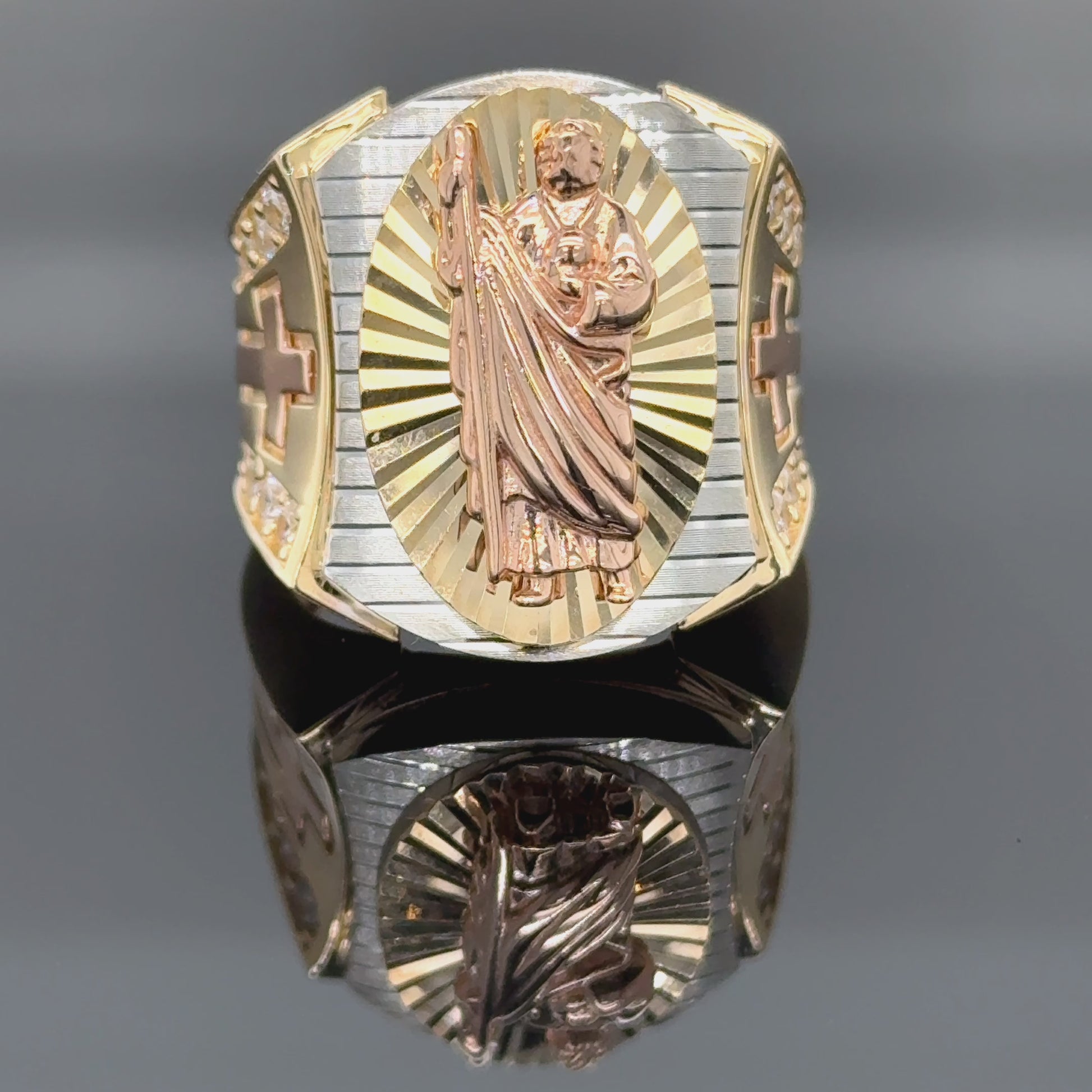 Anillo de oro de 14 quilates en 3 tonos San Judas