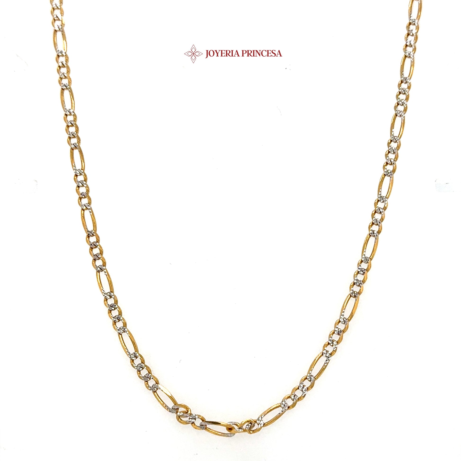 A timeless 14K gold Figaro chain designed with diamond-cut accents for extra brilliance.