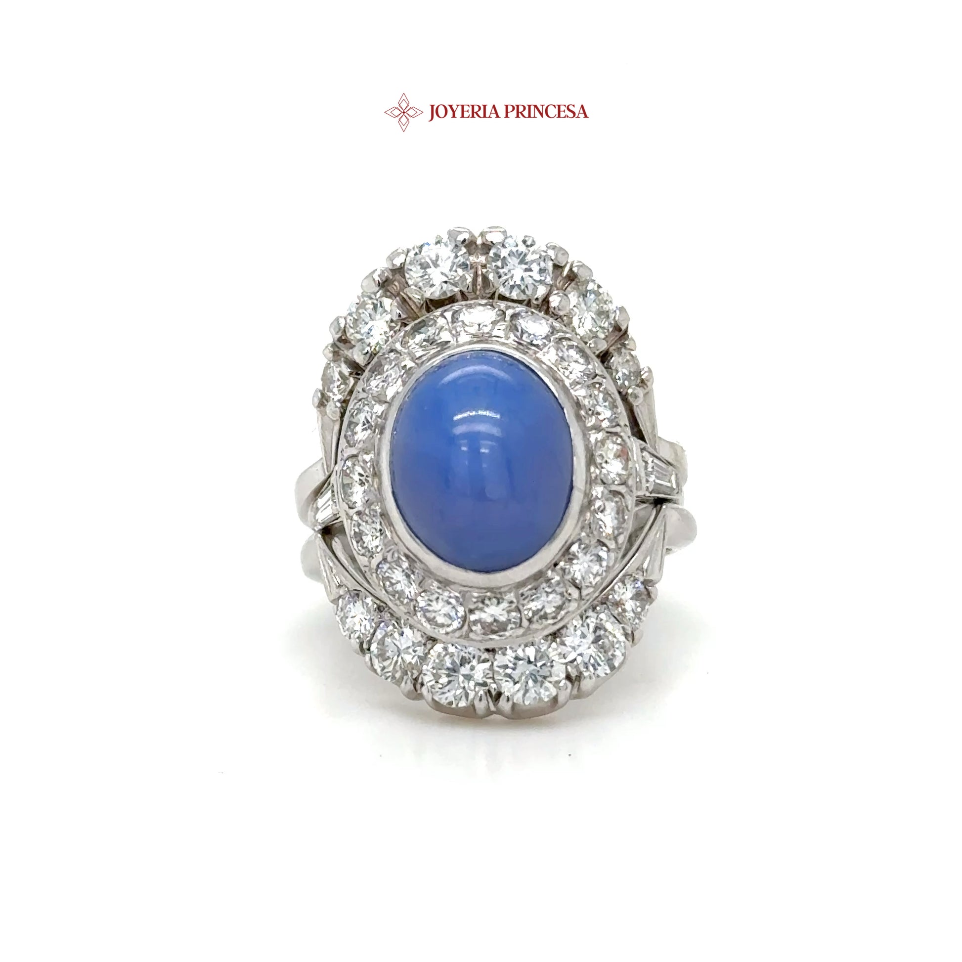 Anillo de oro blanco con zafiro estrella azul de 14 quilates y diamantes naturales