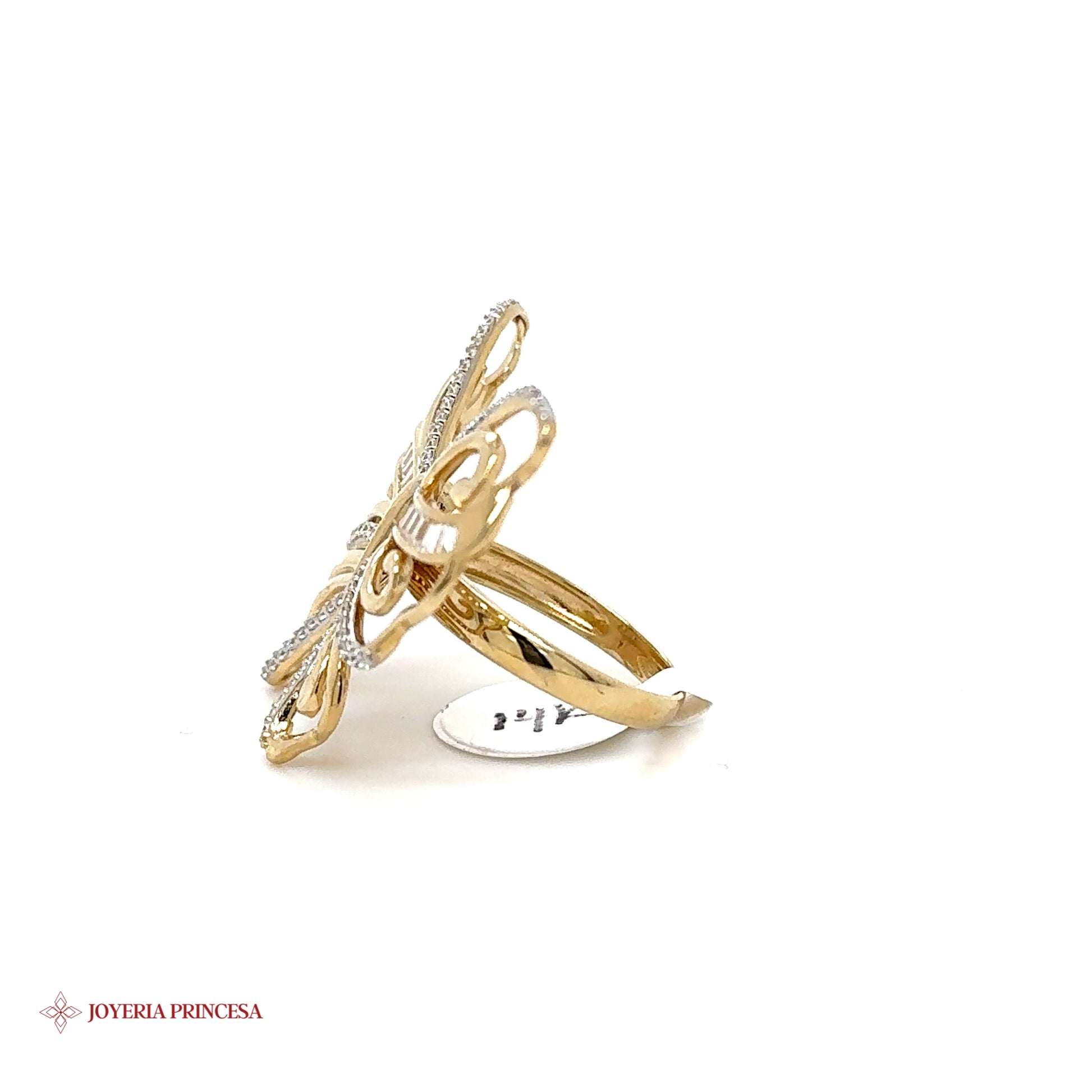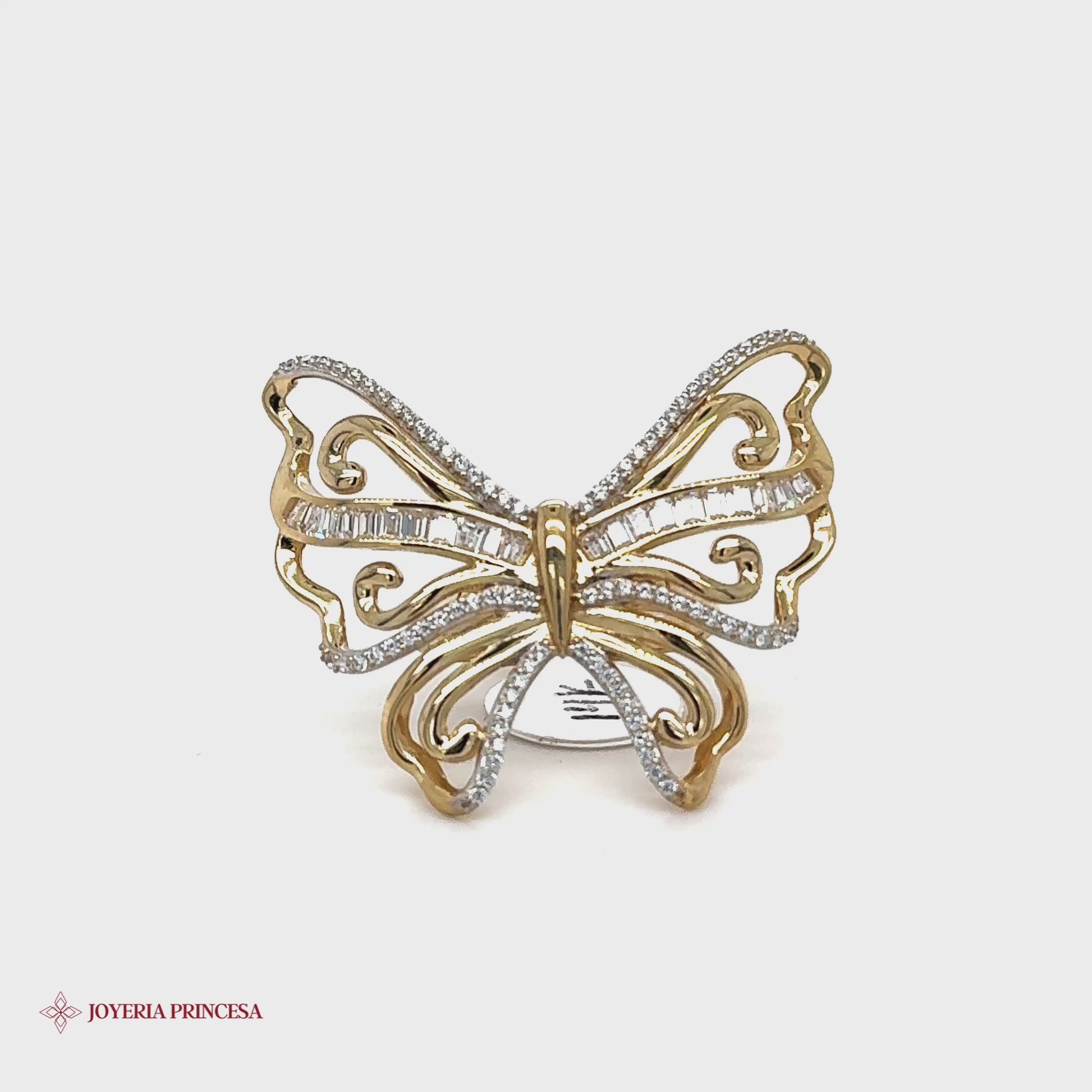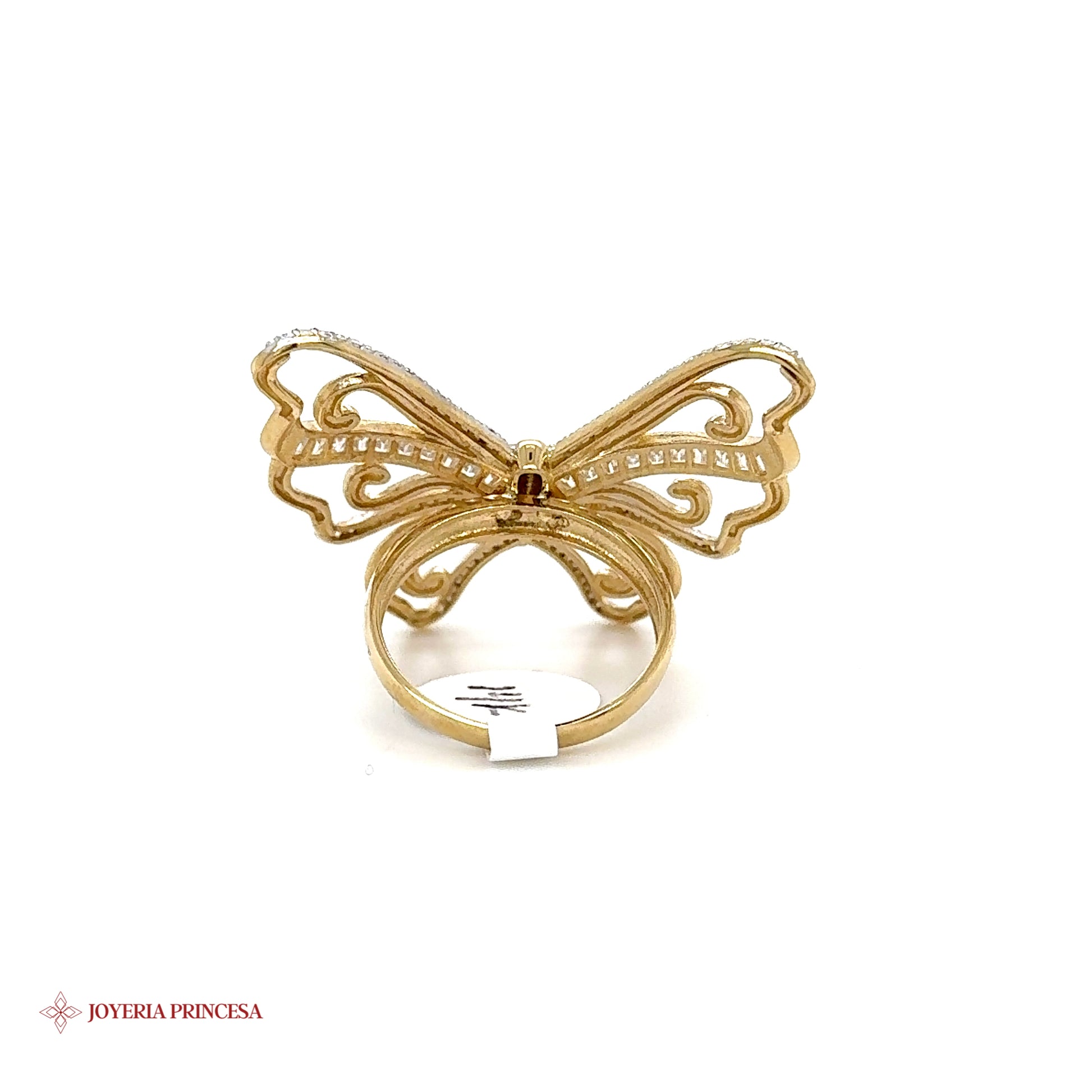 Exquisito anillo mariposa de 14 quilates con brillantes circonitas. Diseño delicado y elegante para un look elegante.