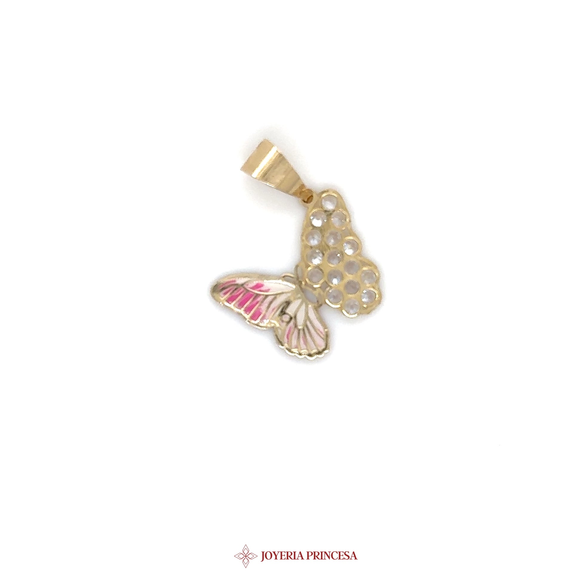 ES: Este encantador colgante de mariposa de 14K presenta un vibrante detalle de esmalte y un delicado diseño calado. • Hecho de oro de 14K • Impresionantes acentos de esmalte colorido • Ligero y perfecto para el uso diario
