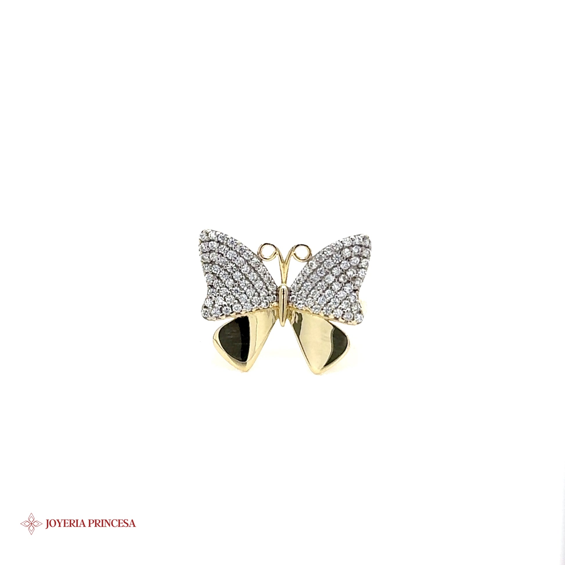 Un delicado anillo de mariposa de 14 quilates adornado con piedras de circonita. Perfecto para añadir un toque de brillo a cualquier atuendo.