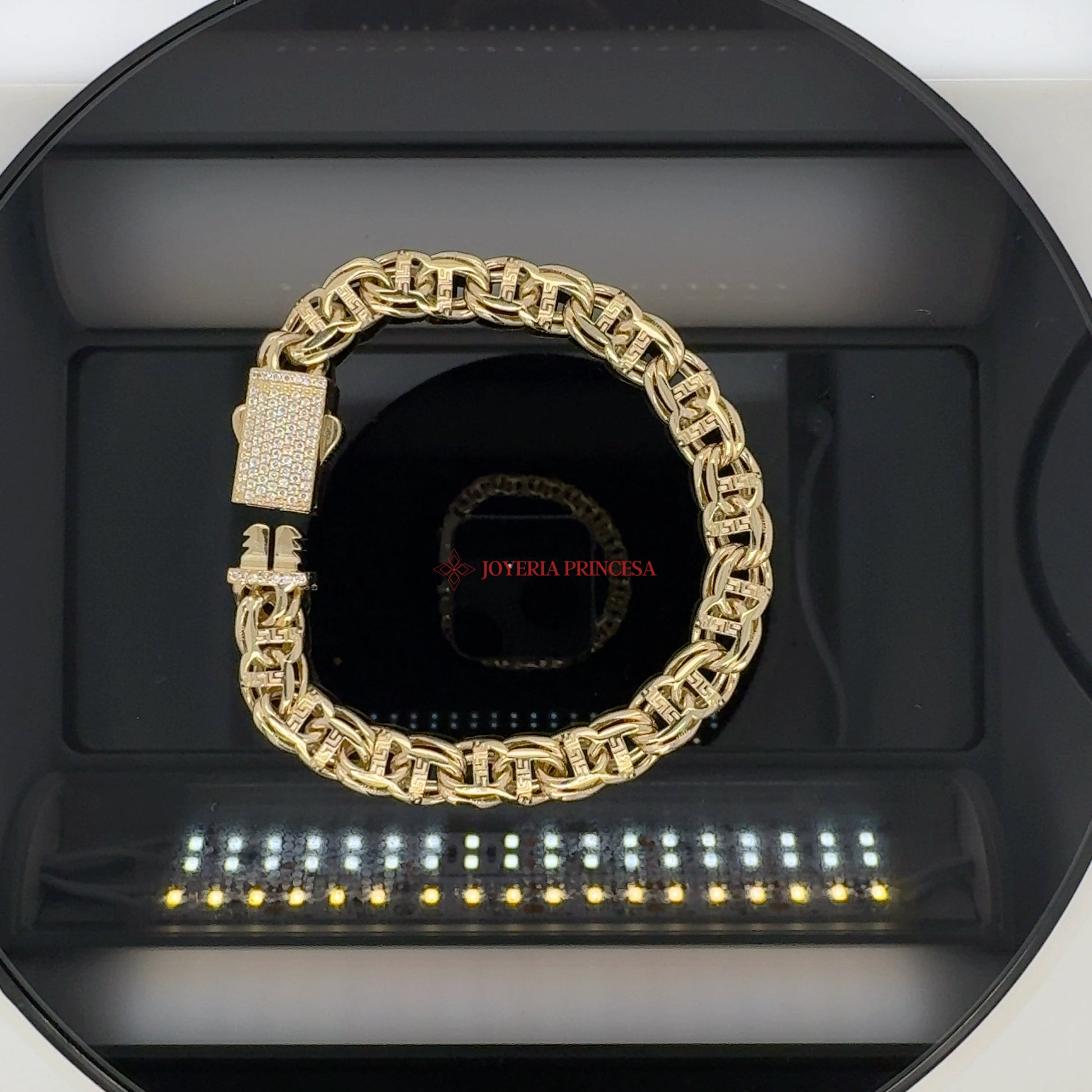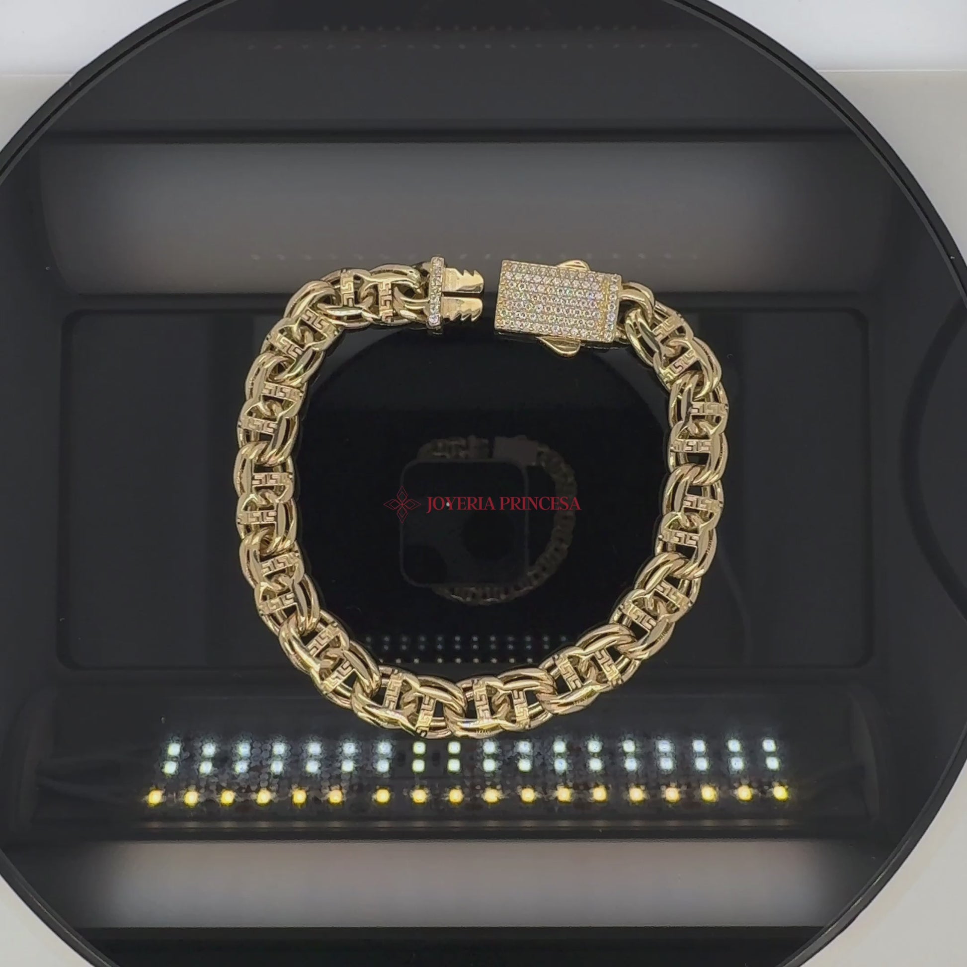 Eleve su look con la pulsera de oro de 14 quilates. Su elegante diseño de eslabones y su cierre detallado la hacen perfecta para cualquier ocasión.