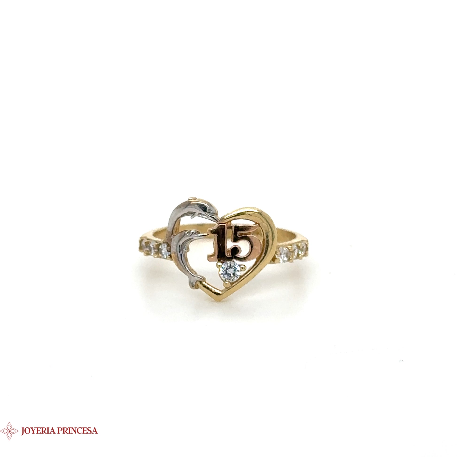 Anillo Corazón Quinceañera 14K Doble Tono Cristal Incrustado