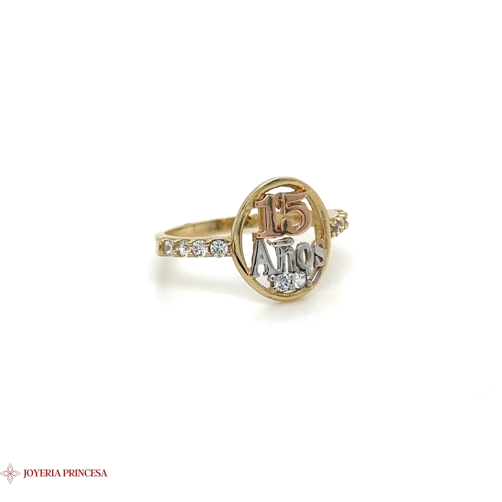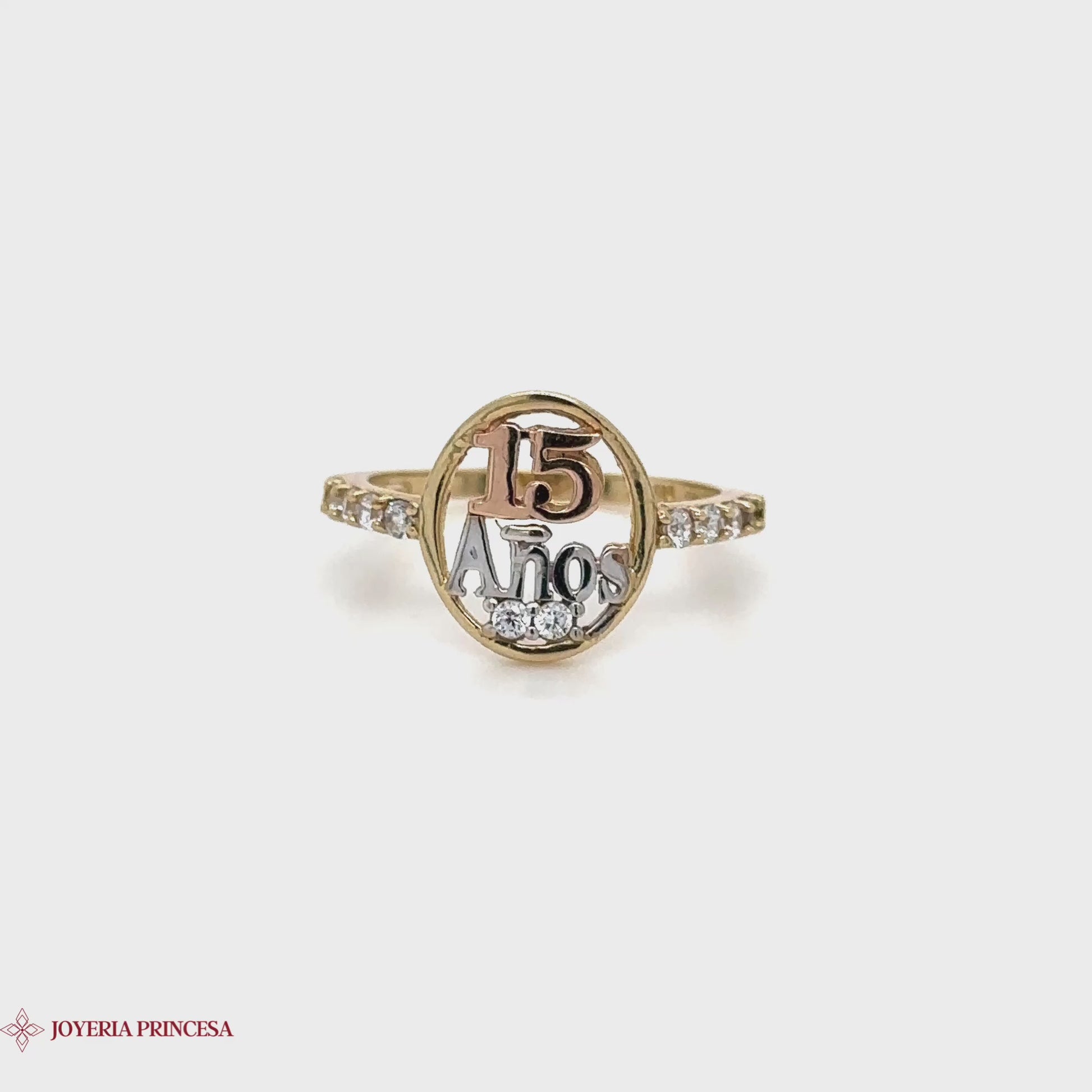 14K Elegante Anillo Conmemorativo de Quinceañera