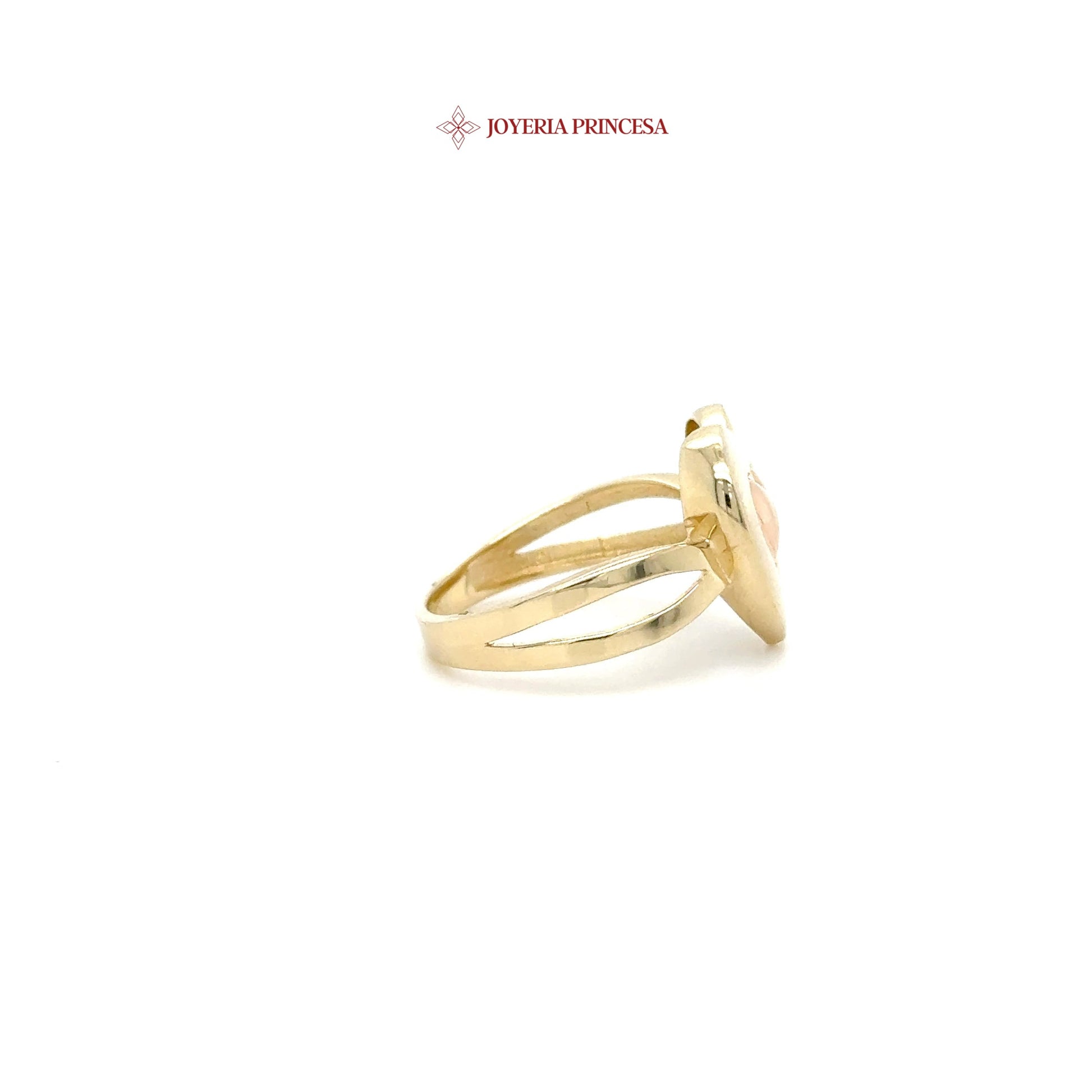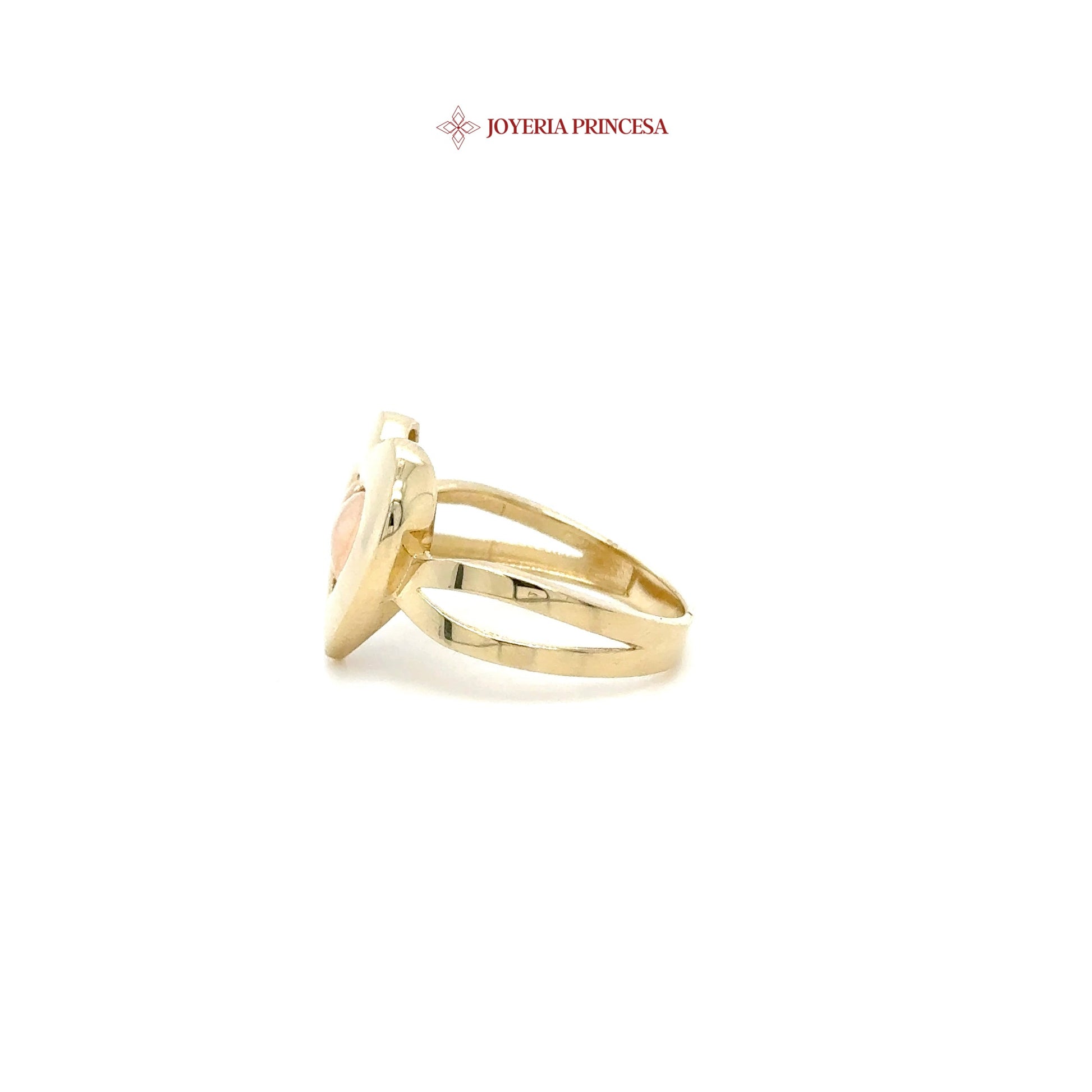 The 14K gold ring features a double heart design. Its band elegantly splits for added detail.