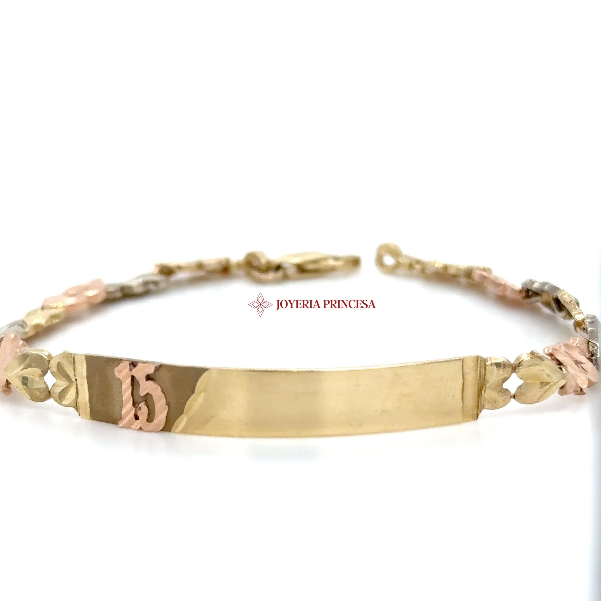 This exquisite bracelet features a polished gold band complemented by delicate rose accents, creating a harmonious blend of elegance and sophistication. - Polished 14K gold finish - Intricate rose gold accents - Stylish clasp closure