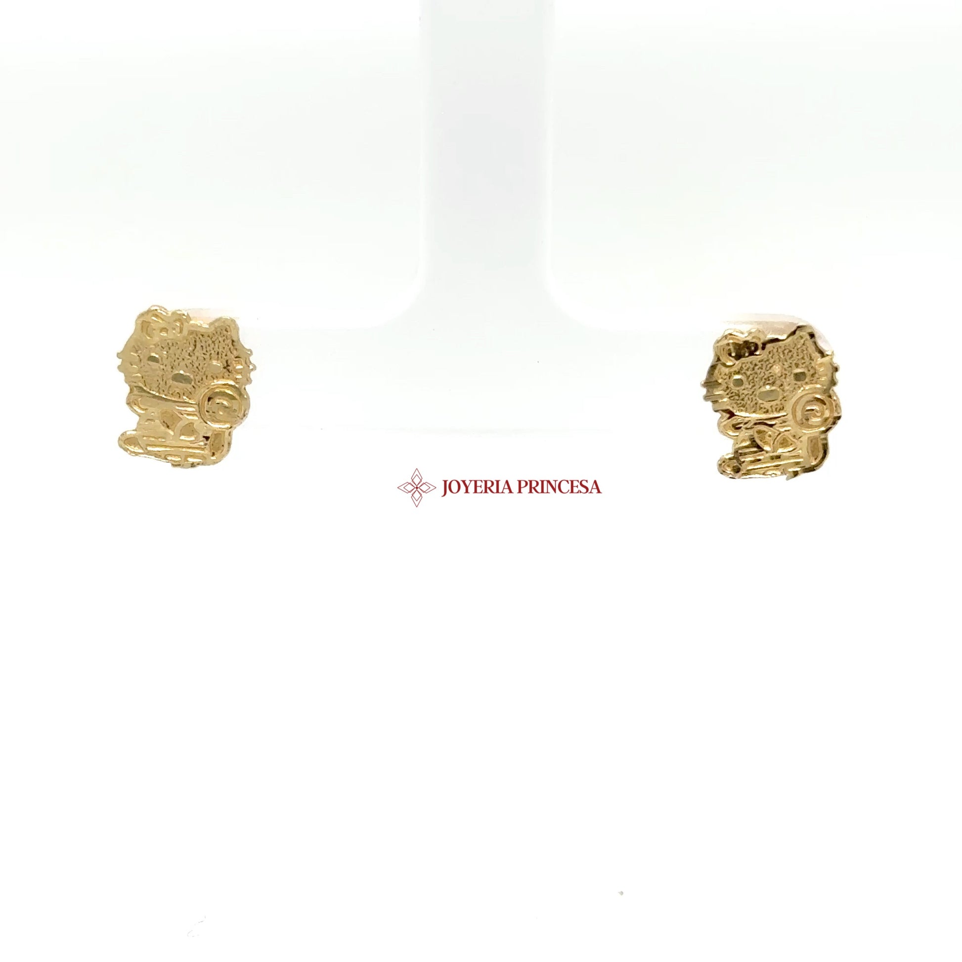 Unique 14K gold studs with an intricate Hello Kitty design for a cultural touch. • Solid 14K yellow gold • Detailed engraving with symbolic patterns • Lightweight and easy to wear