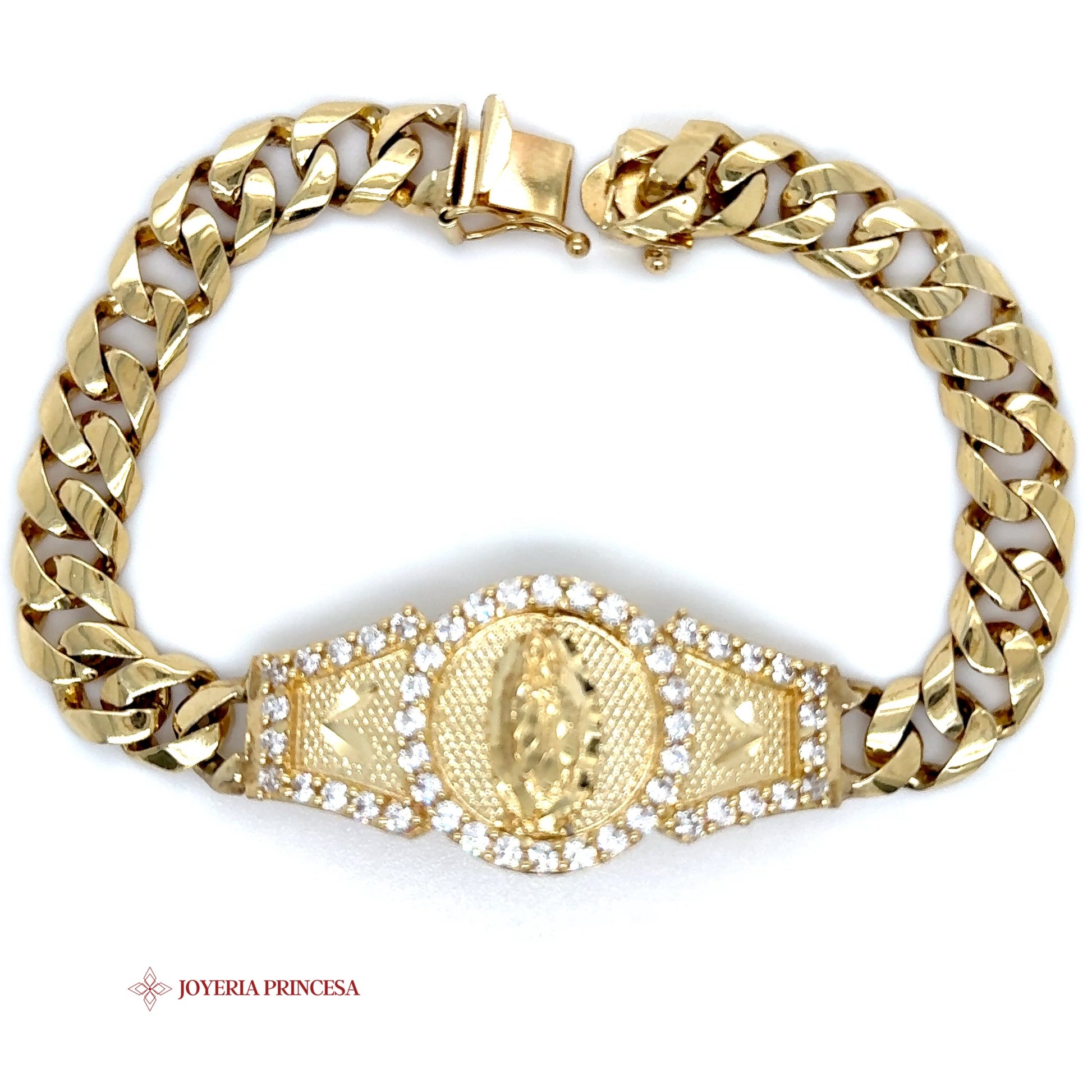 A devotional bracelet featuring the Virgin Mary medallion framed by sparkling stones.