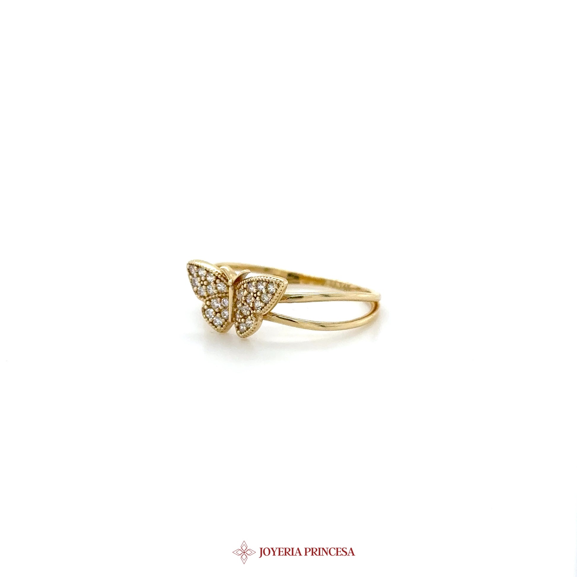 EN: Delicate 14K gold butterfly ring adorned with shimmering zirconia stones. • Elegant butterfly motif • Perfect for everyday wear • A lovely gift for special occasions