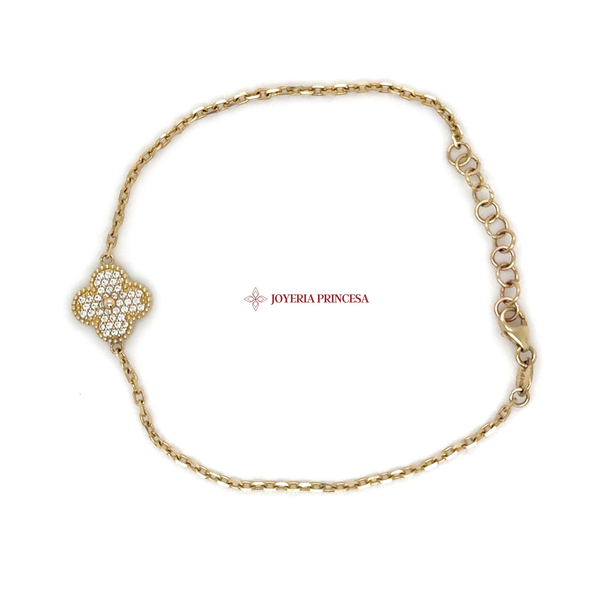 A timeless clover design bracelet that adds a touch of sparkle to everyday elegance. * Crafted in genuine 14K yellow gold * Clover charm with cubic zirconia accents * Adjustable chain for a comfortable fit