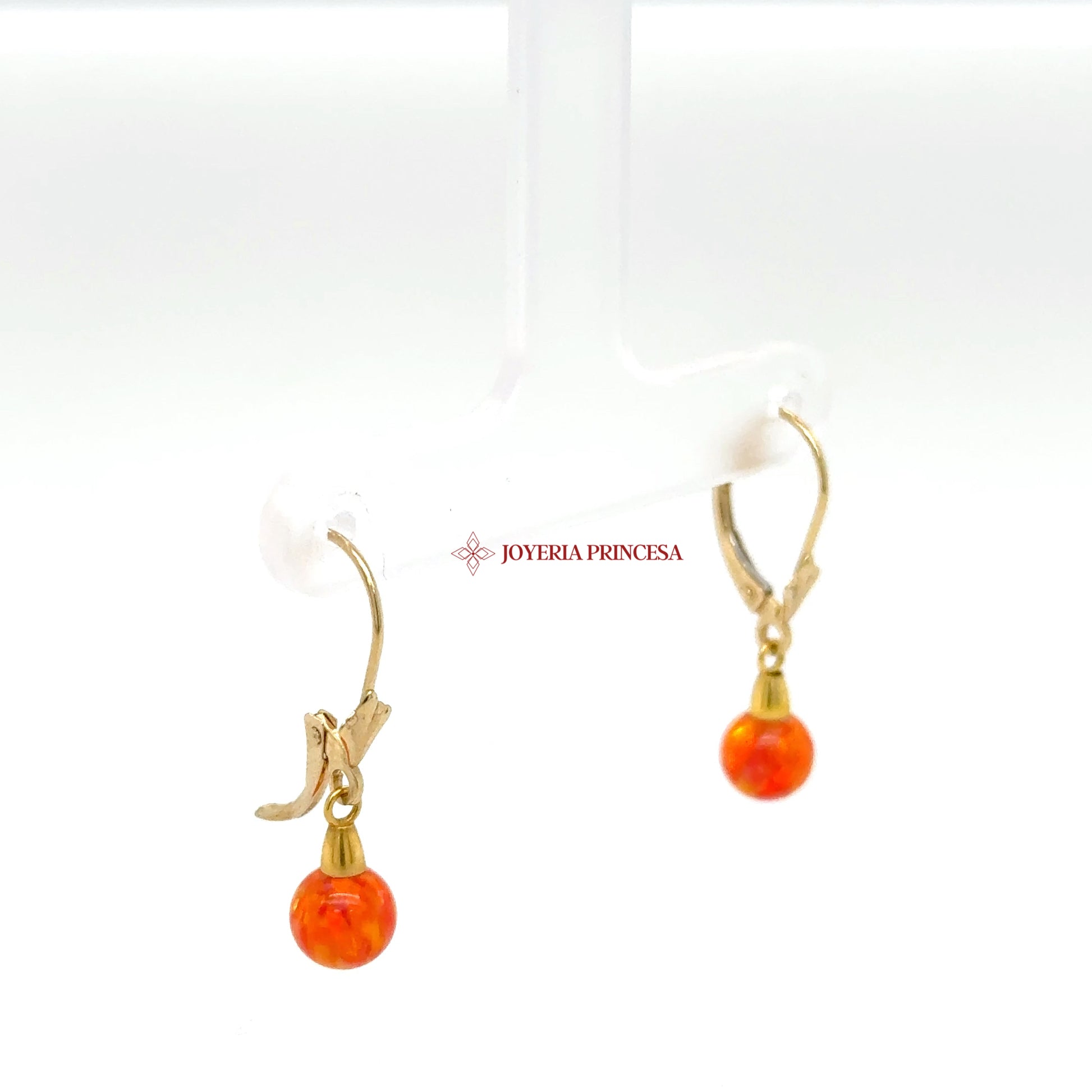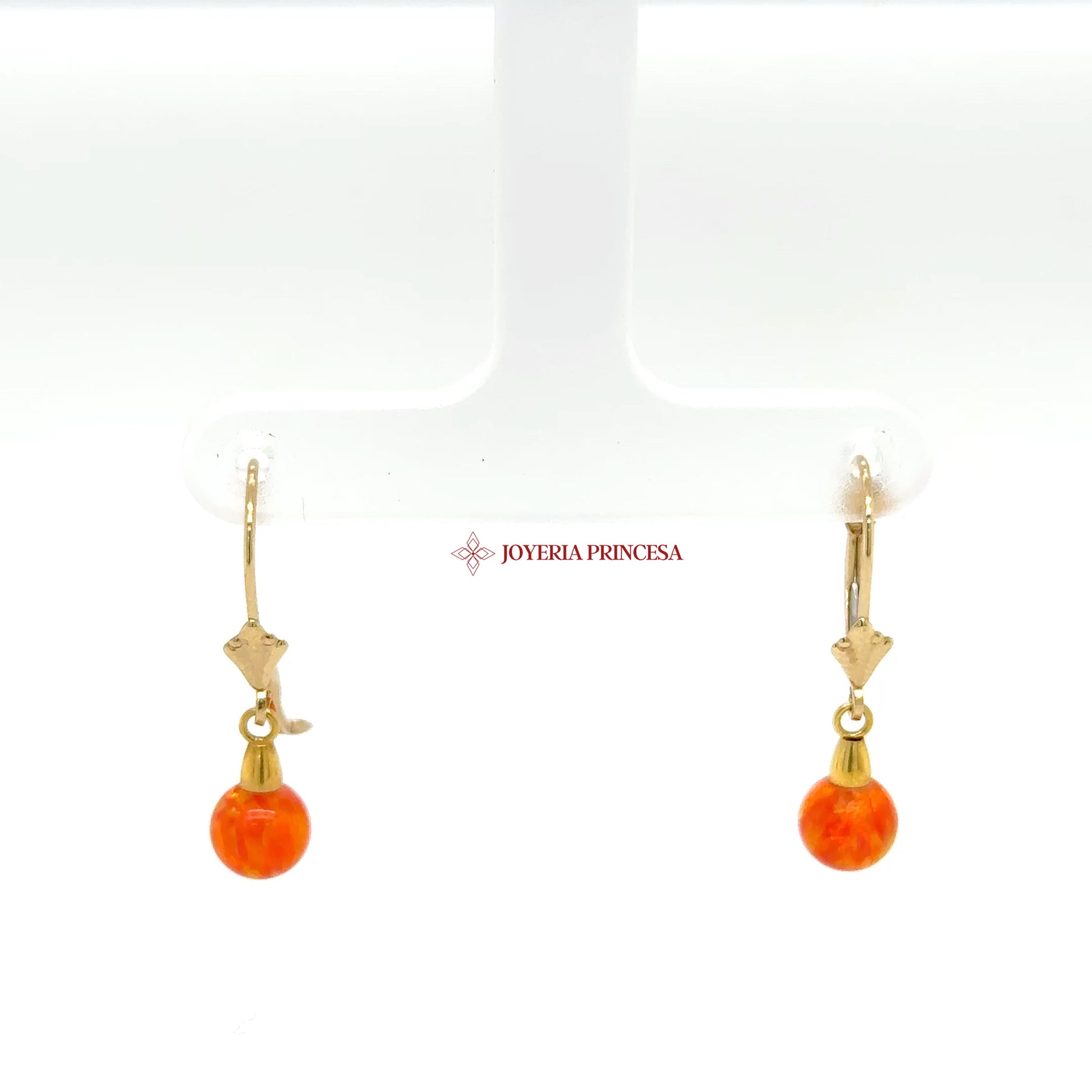 Chic 14K gold earrings with vibrant coral bead dangles for a bold pop of color. • Genuine 14K yellow gold • Red-orange coral bead accents • Lightweight and comfortable dangle design