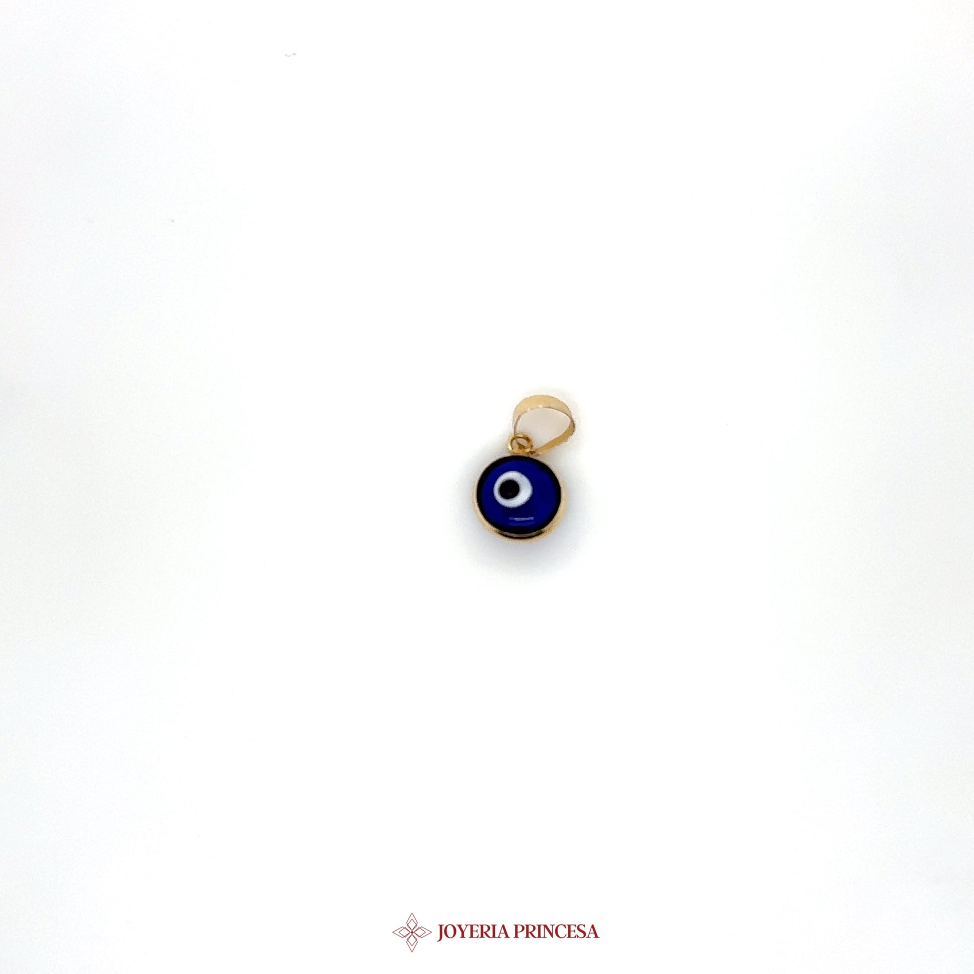 EN: This charming 14K gold evil eye pendant features vibrant blue enamel for protection and style. • Crafted in 14K gold • Eye-catching blue enamel design • Perfect for layering with other charms