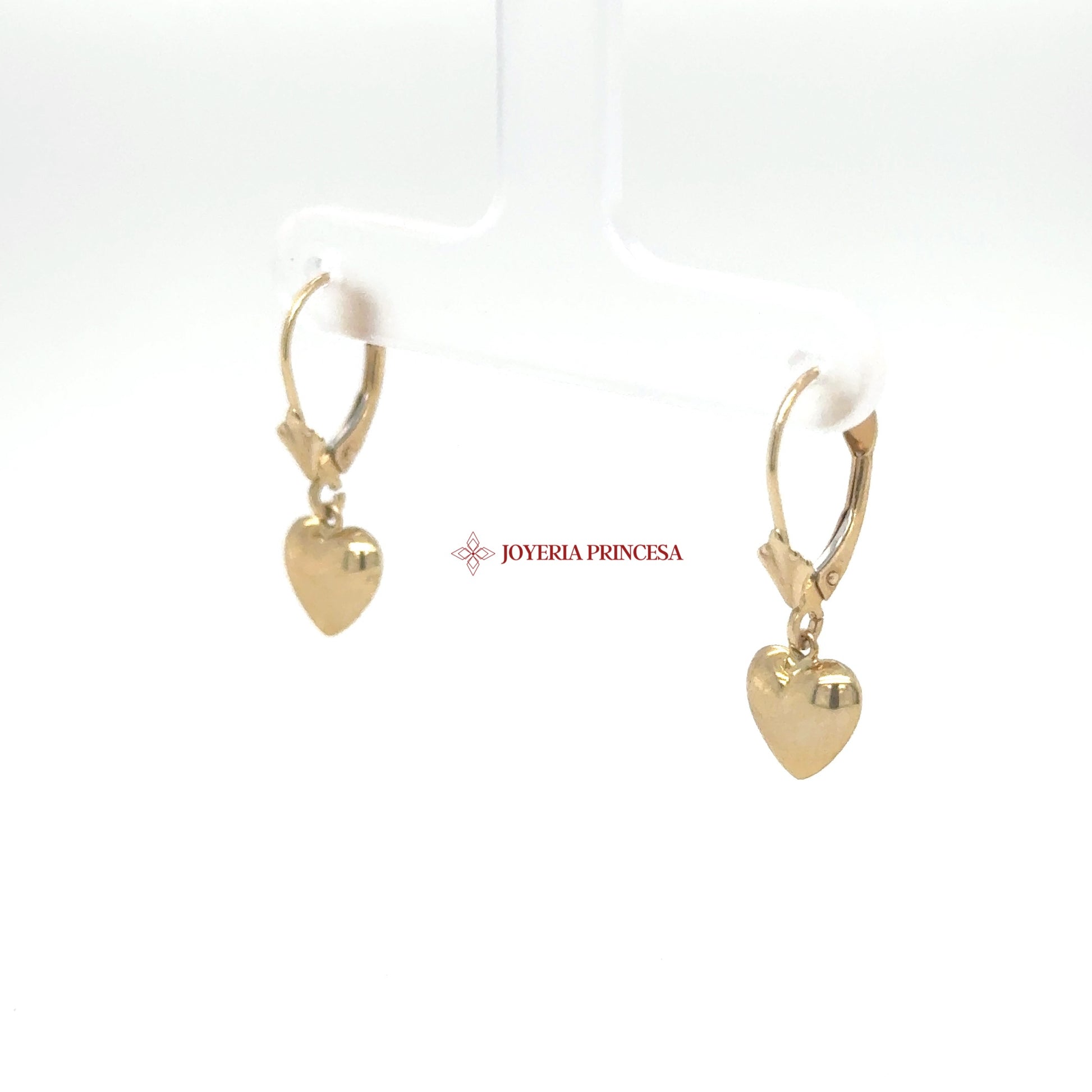 EN: These charming 14K gold heart dangle earrings add a touch of love to any outfit. • Crafted from high-quality 14K gold • Features sparkling cubic zirconias for a radiant look • Lightweight design for comfortable wear ES: Estos encantadores aretes colgantes de corazón en oro de 14K añaden un toque de amor a cualquier atuendo. • Elaborados en oro de 14K de alta calidad • Presentan brillantes zirconias cúbicas para un look radiante • Diseño liviano para un uso cómodo