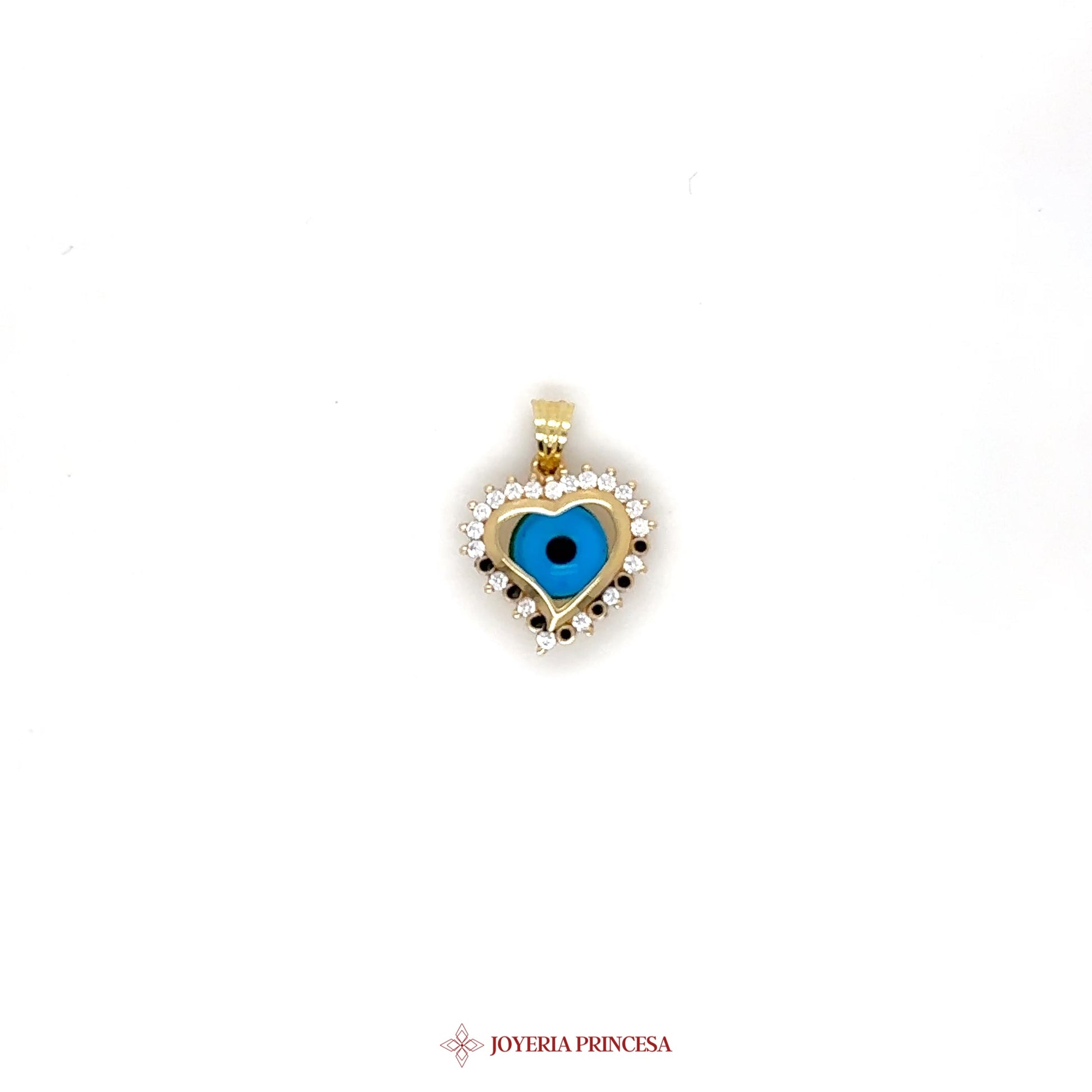 ES: Adórnate con este encantador colgante en forma de corazón que presenta un llamativo motivo de ojo azul. • Elaborado en oro de 14K • Acentuado con piedras brillantes • Perfecto para combinar o usar solo.