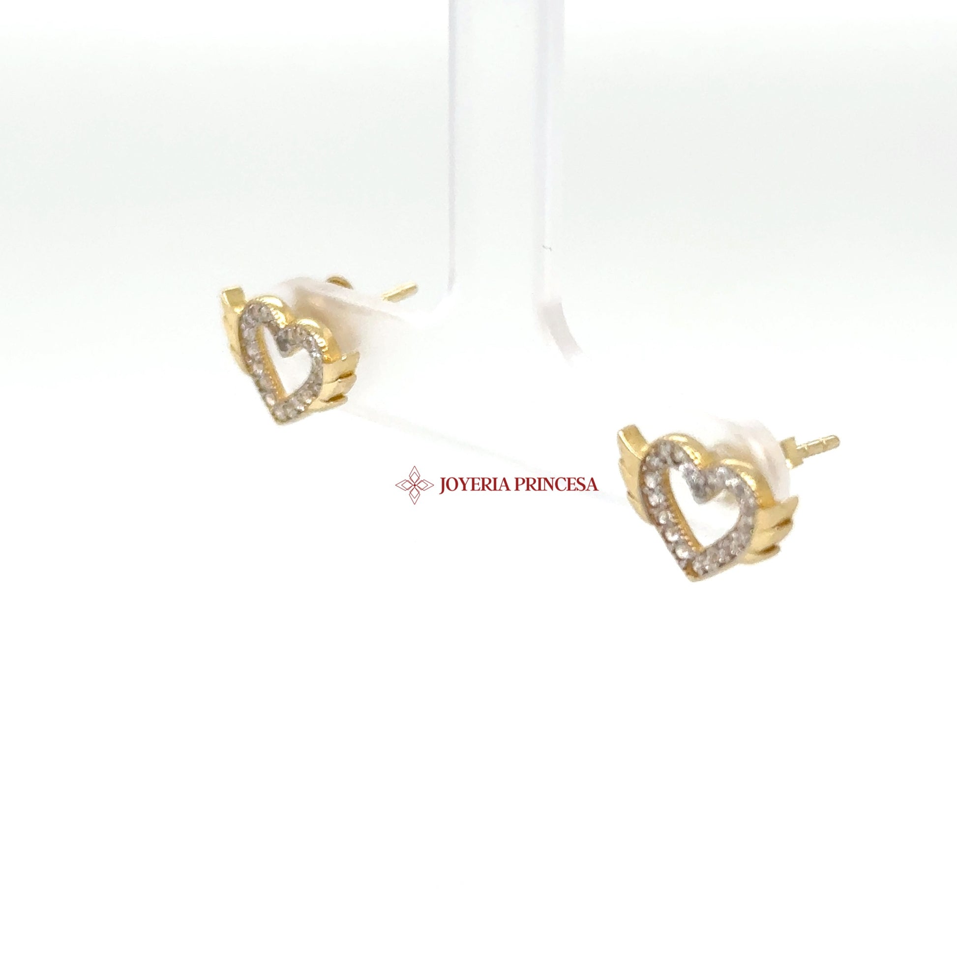 14K Gold Heart Wing Stud Earrings with CZ Stones