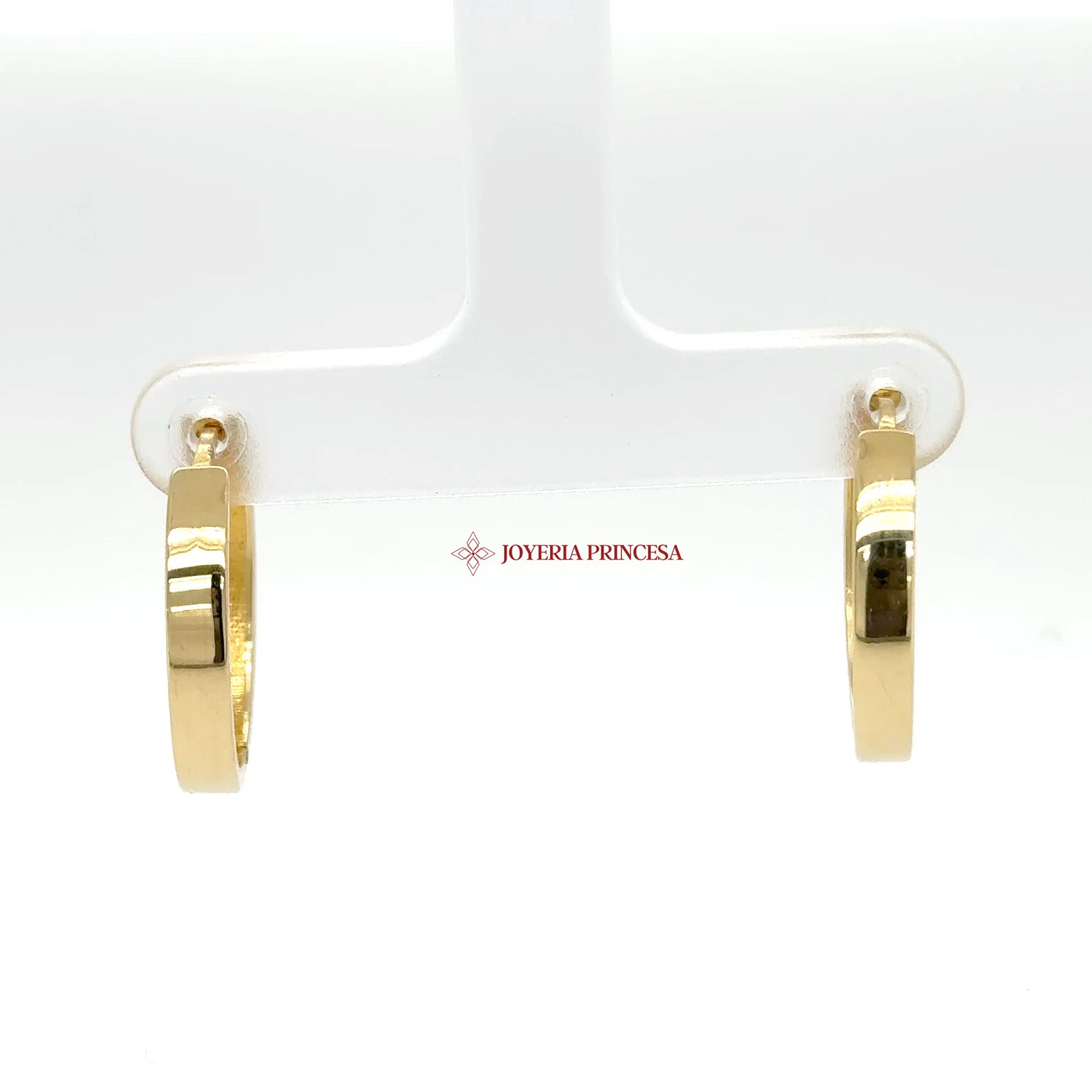 EN: Elevate your style with these sleek 14K gold huggie earrings that add a touch of elegance to any outfit.