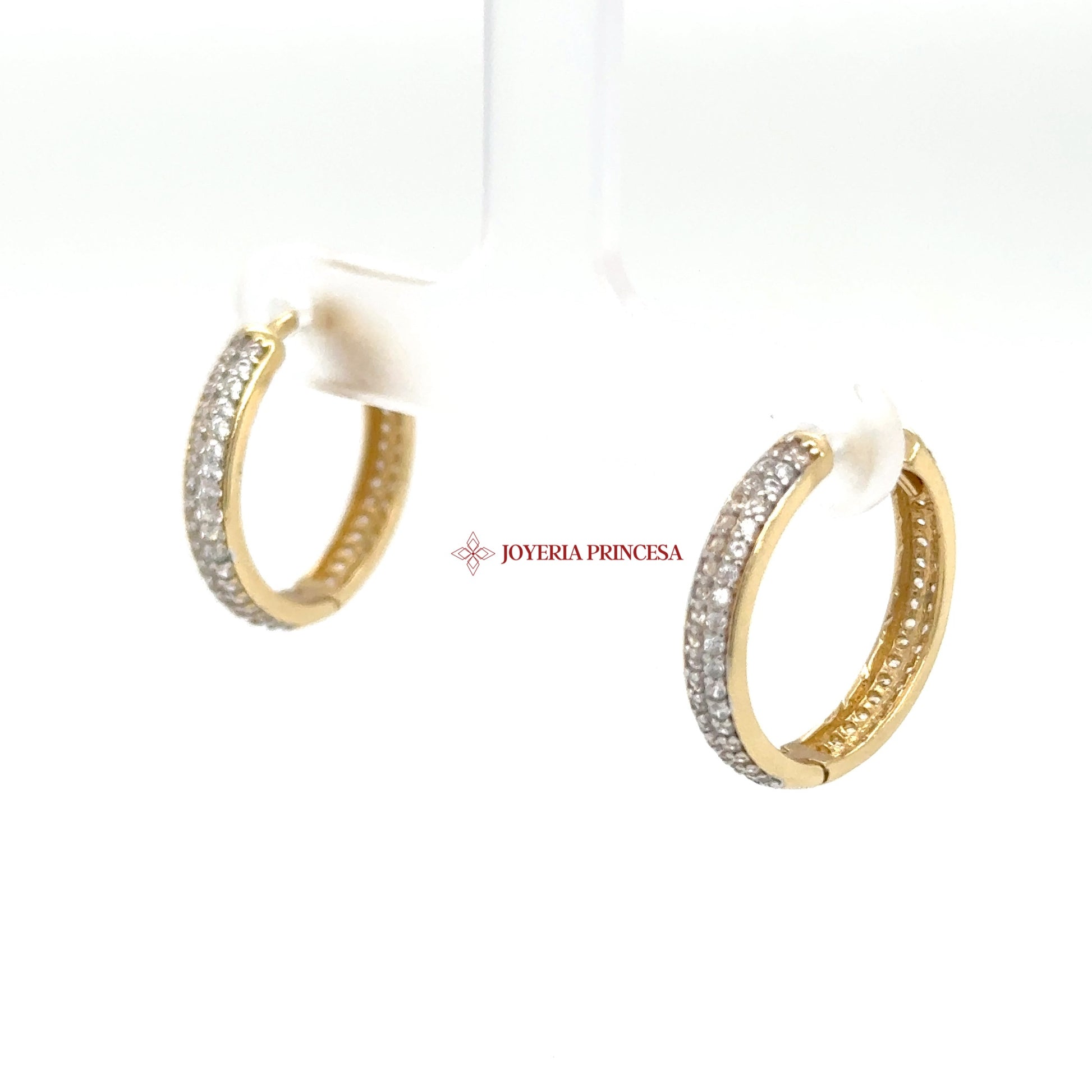 ES: Eleva tu estilo con estos impresionantes pendientes huggie con acentos de zirconia cúbica.