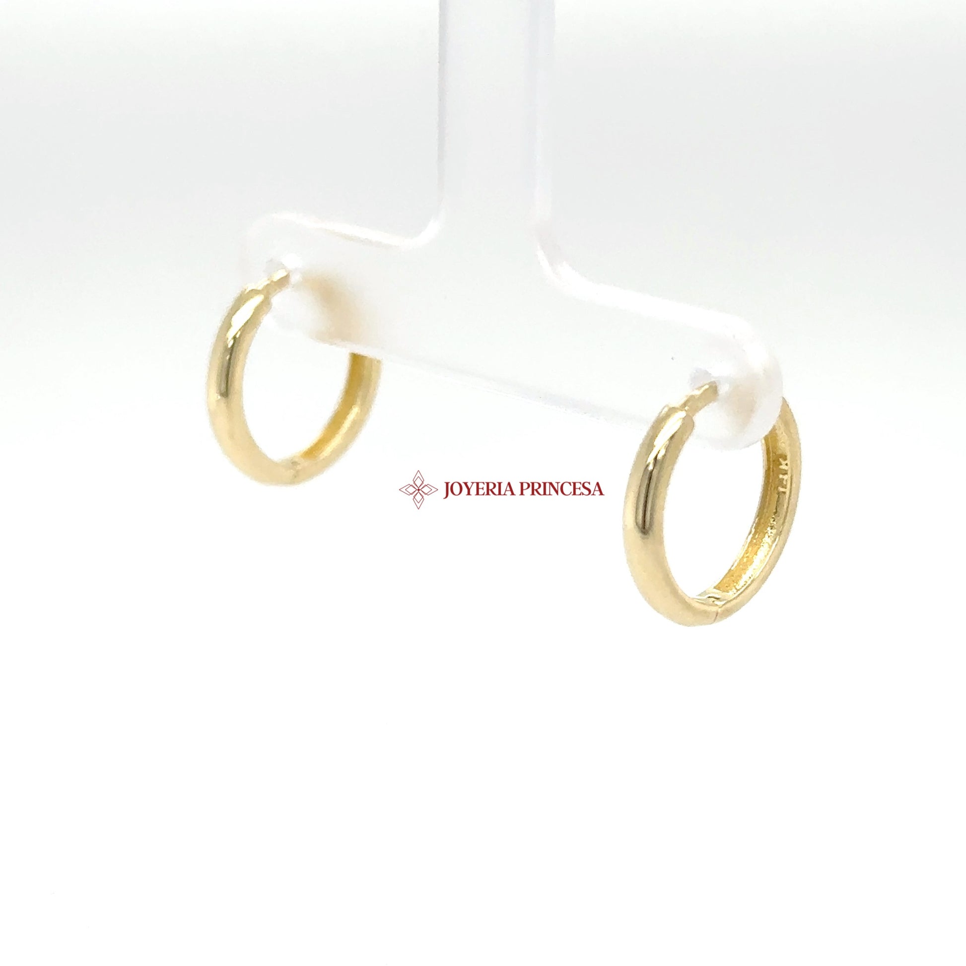 EN: These 14K gold huggie earrings offer a sleek and polished look for everyday elegance.