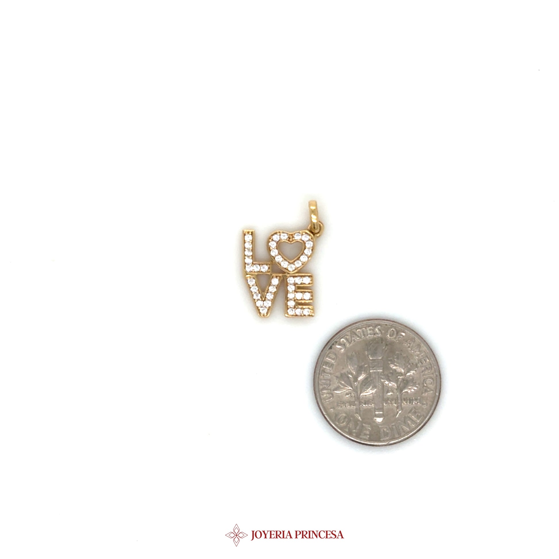EN: Celebrate love with this charming pendant featuring a sparkling design. • Crafted in 14K gold • Adorned with shimmering cubic zirconia • Perfect for layering or as a standalone piece. ES: Celebra el amor con este encantador colgante de diseño brillante. • Elaborado en oro de 14K • Adornado con zirconias cúbicas que brillan • Perfecto para apilar o como una pieza independiente.