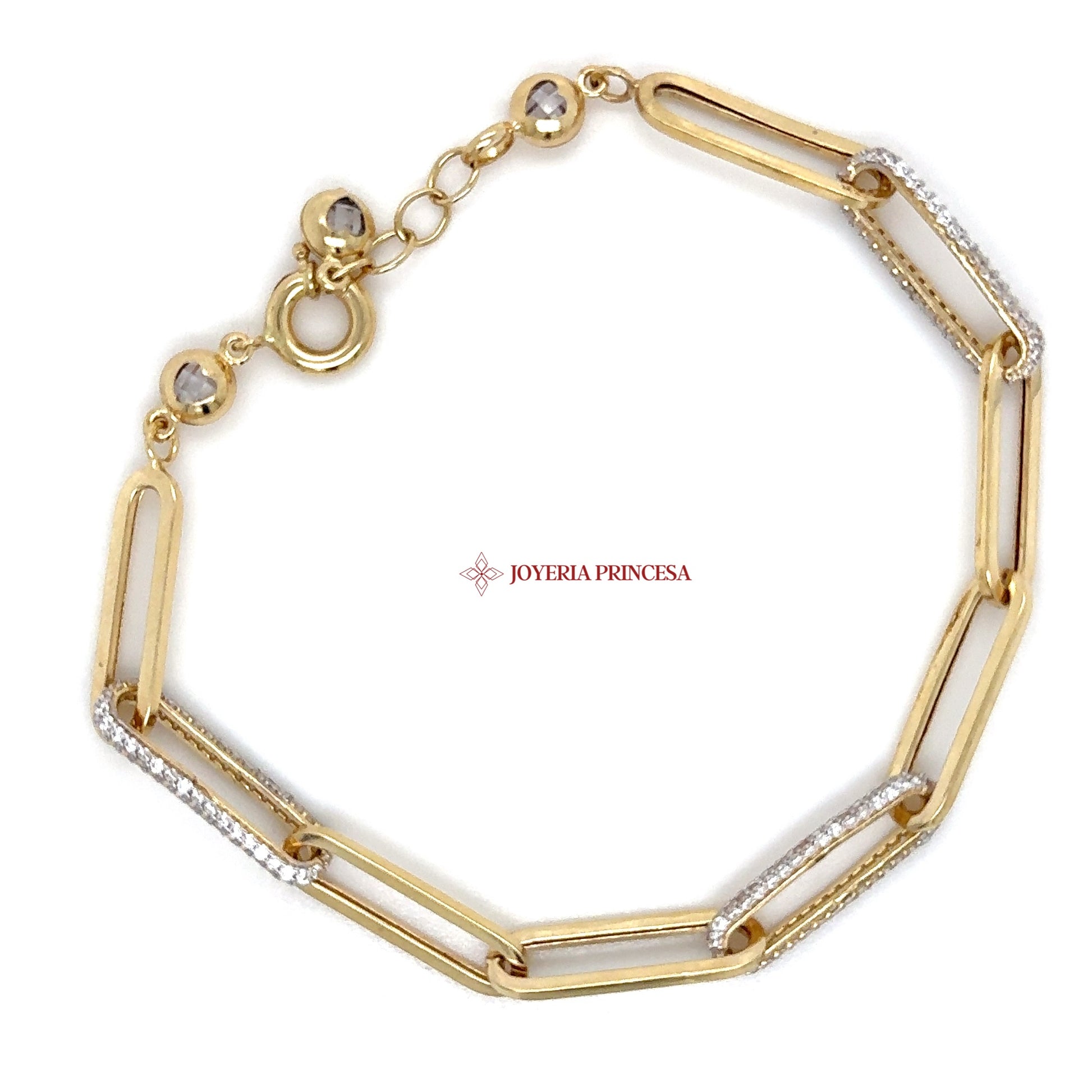 14K Gold Paperclip Link Bracelet with Pave Accents