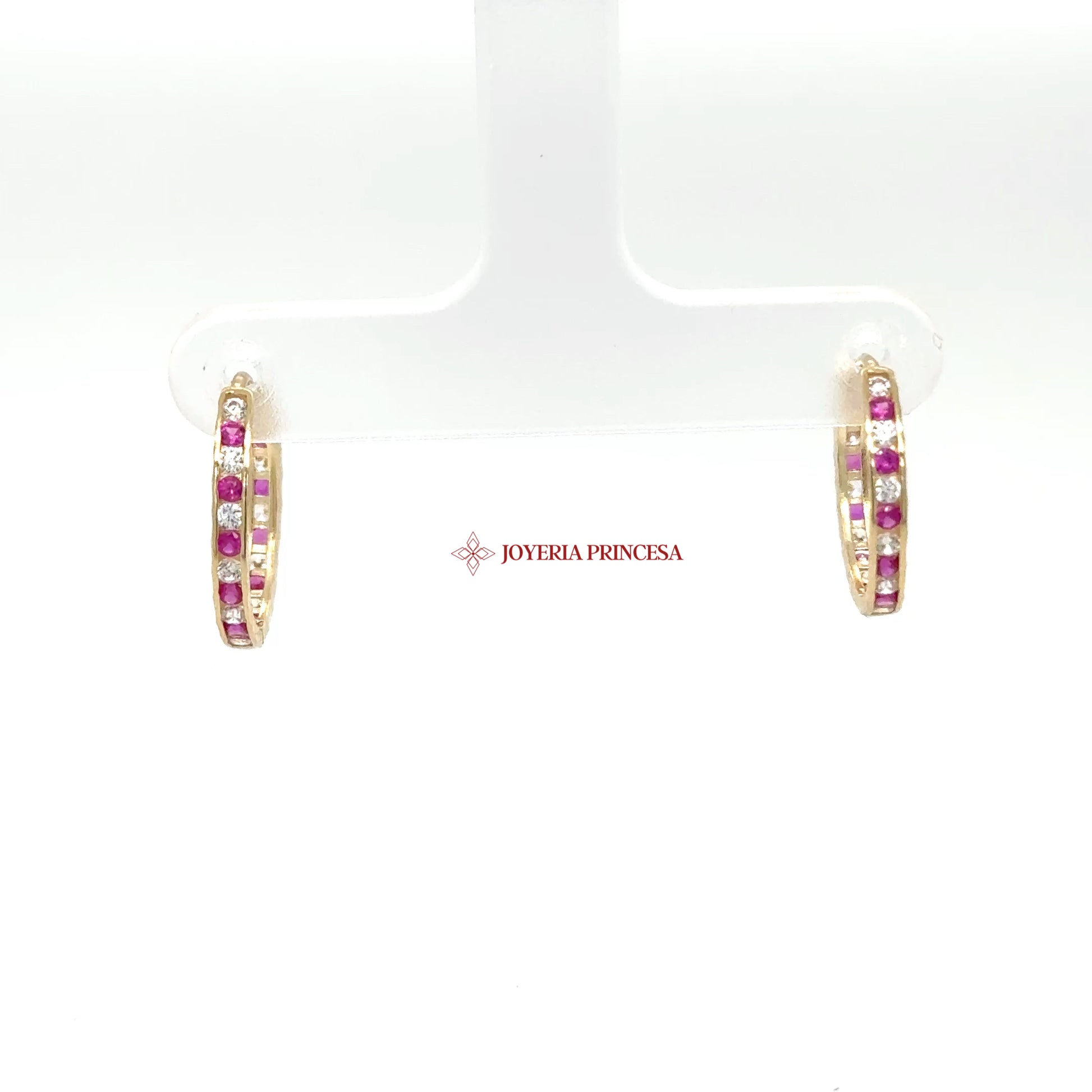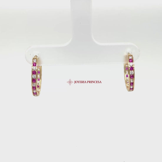 Elegant 14K gold hoops accented with vibrant ruby-colored stones for a timeless look.