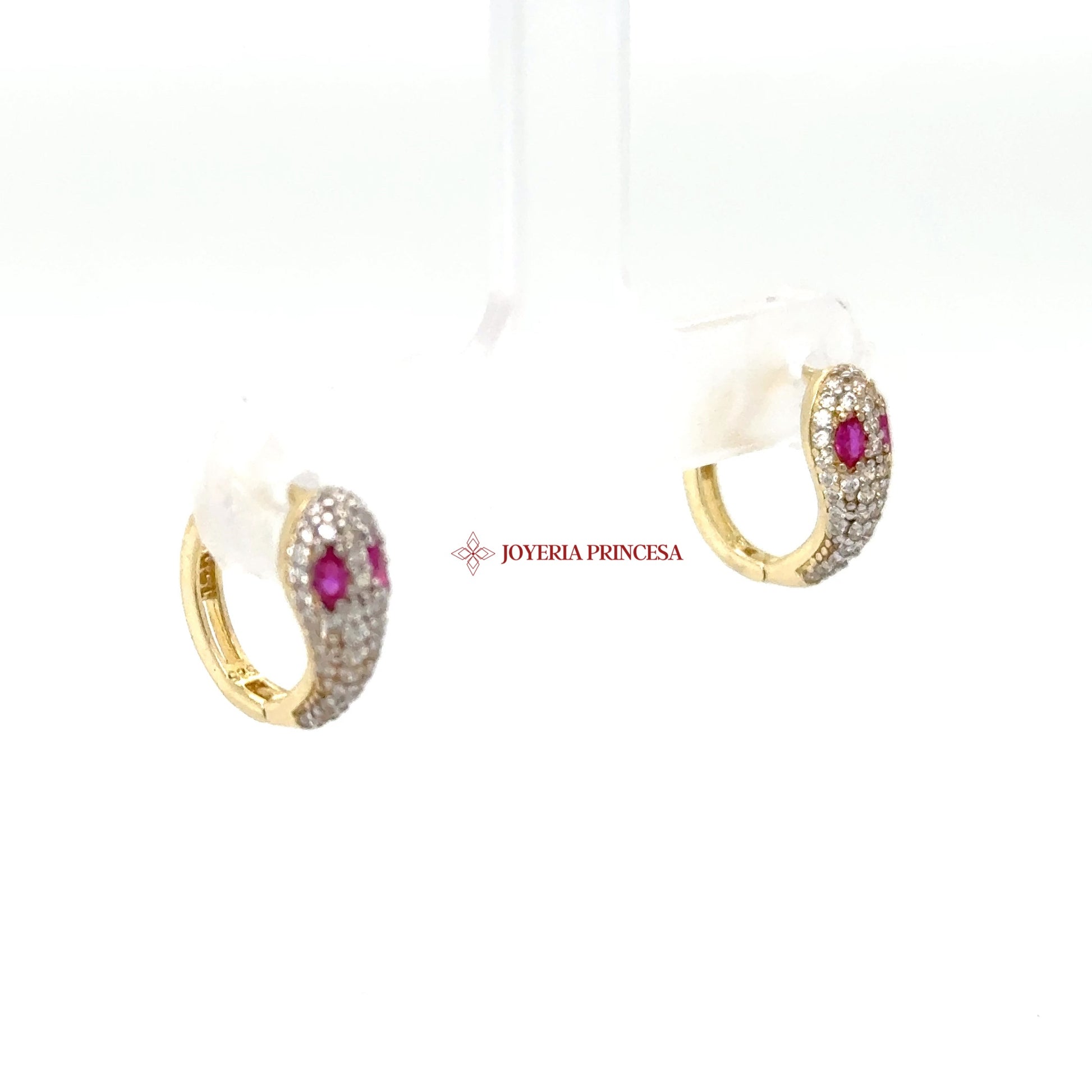 EN: Embrace your wild side with these stunning snake huggie earrings featuring rubies and cubic zirconias. • Crafted from 14K gold for lasting shine • Eye-catching snake design with vibrant ruby accents • Secure huggie closure for comfortable wear ES: Adopta tu lado salvaje con estos impresionantes pendientes huggie de serpiente con rubíes y circonitas cúbicas. • Fabricados en oro de 14K para un brillo duradero • Diseño de serpiente llamativo con acentos de rubí vibrantes • Cierre huggie seguro para un uso cómodo