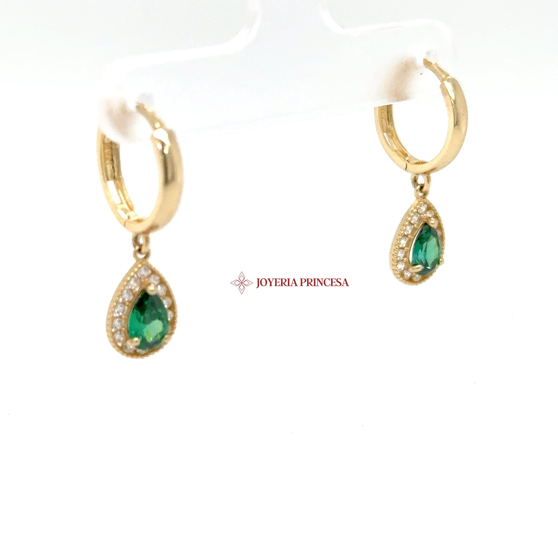 EN: Elevate your style with these elegant teardrop huggie earrings featuring vibrant green cubic zirconias.