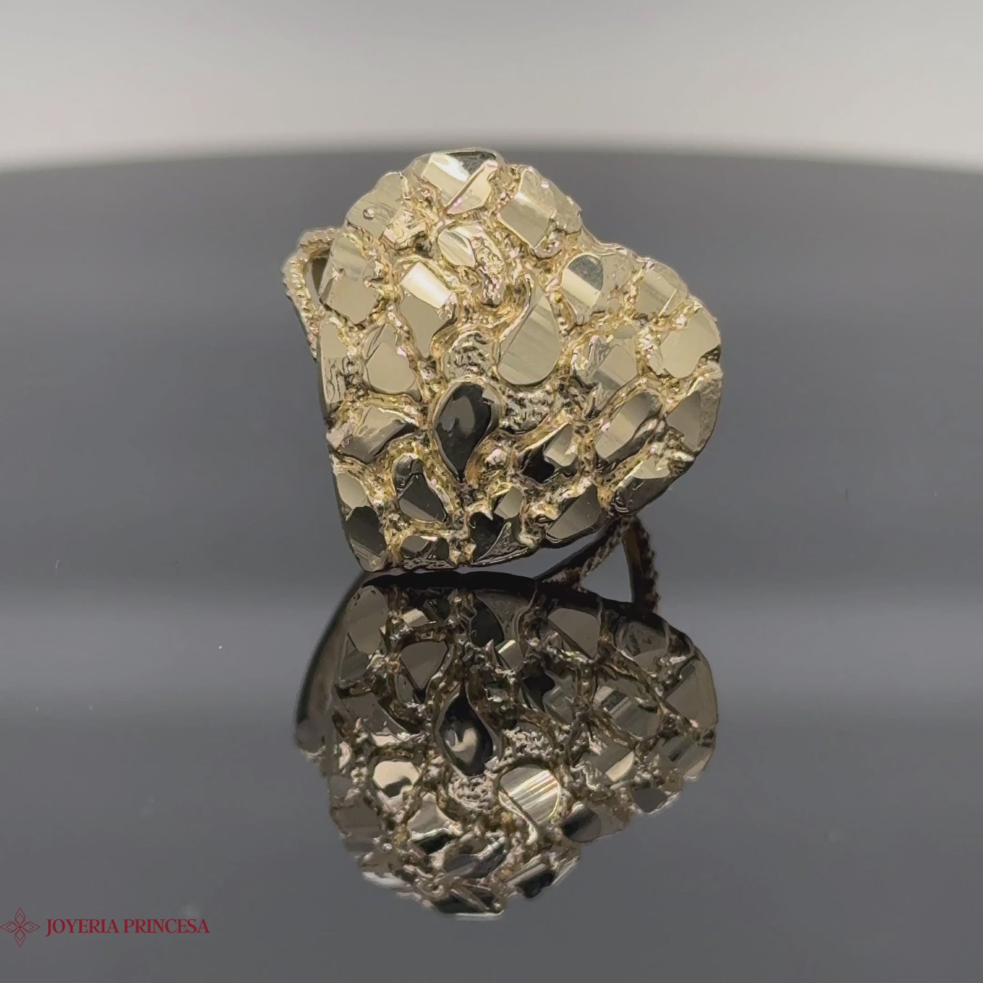 El Anillo Corazón Pepita de Oro de 14K combina el encanto rudo con la elegancia atemporal. Las características incluyen: