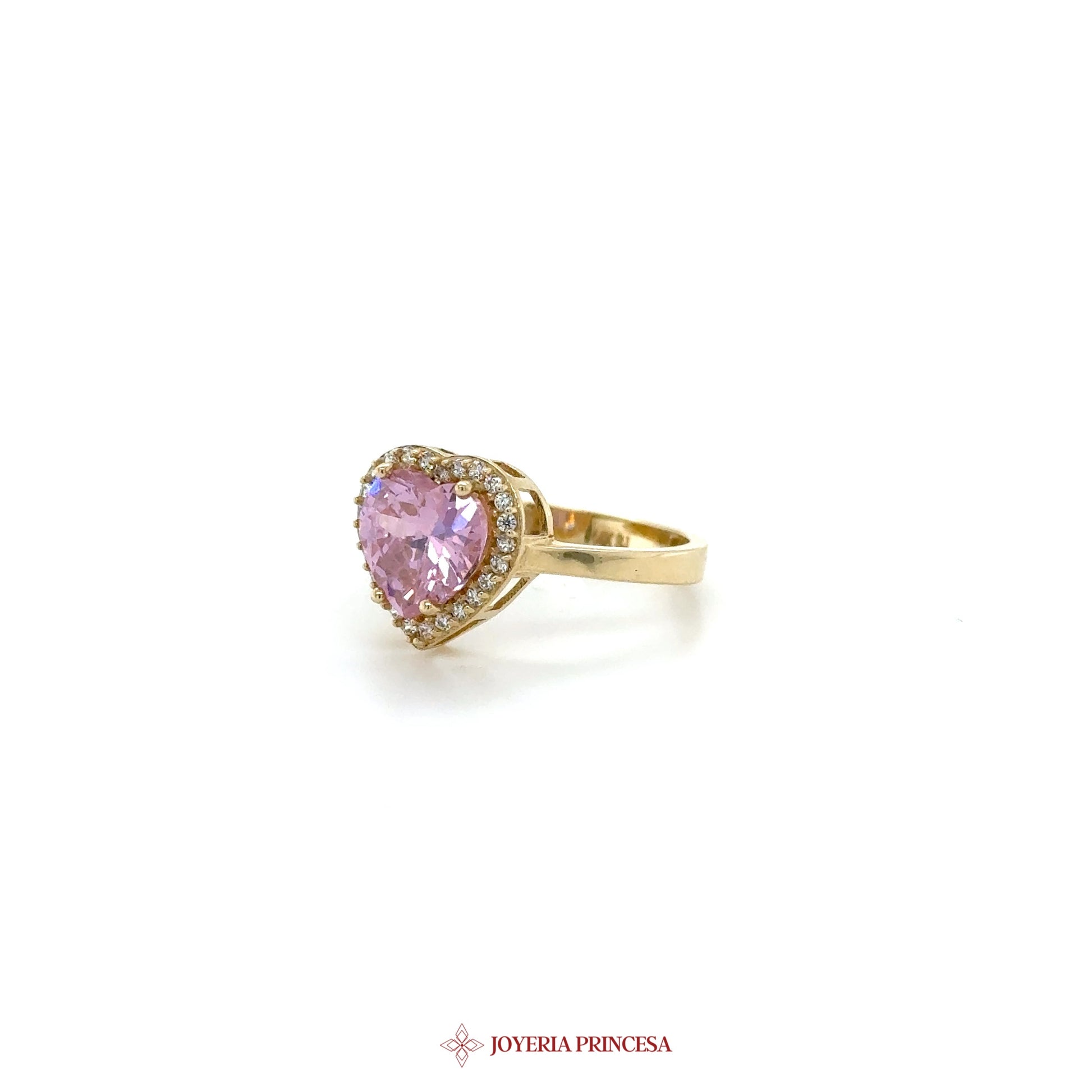 ES: Este encantador anillo en forma de corazón de 14K presenta una impresionante zirconia rosa en el centro. • Fabricado en oro de 14K genuino • Acentuado con zirconias brillantes • Perfecto para ocasiones especiales.