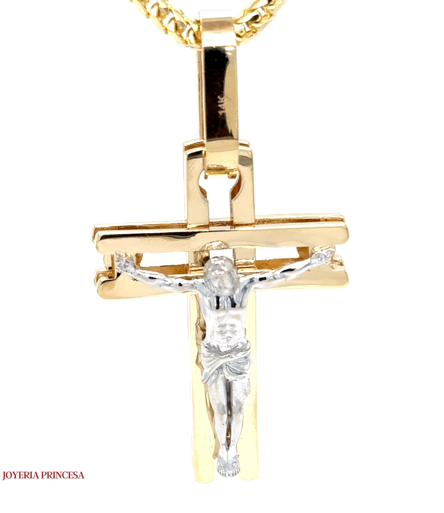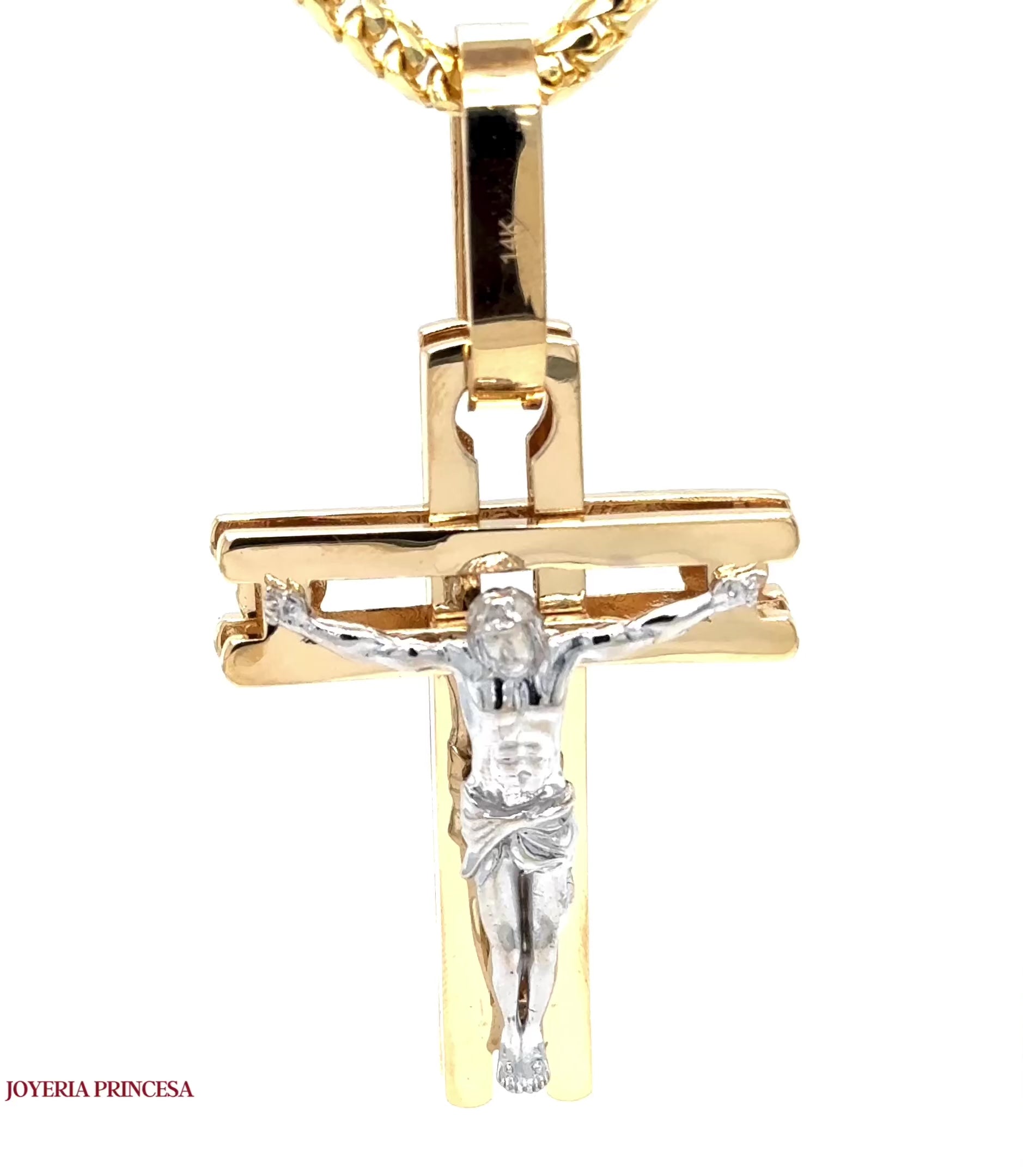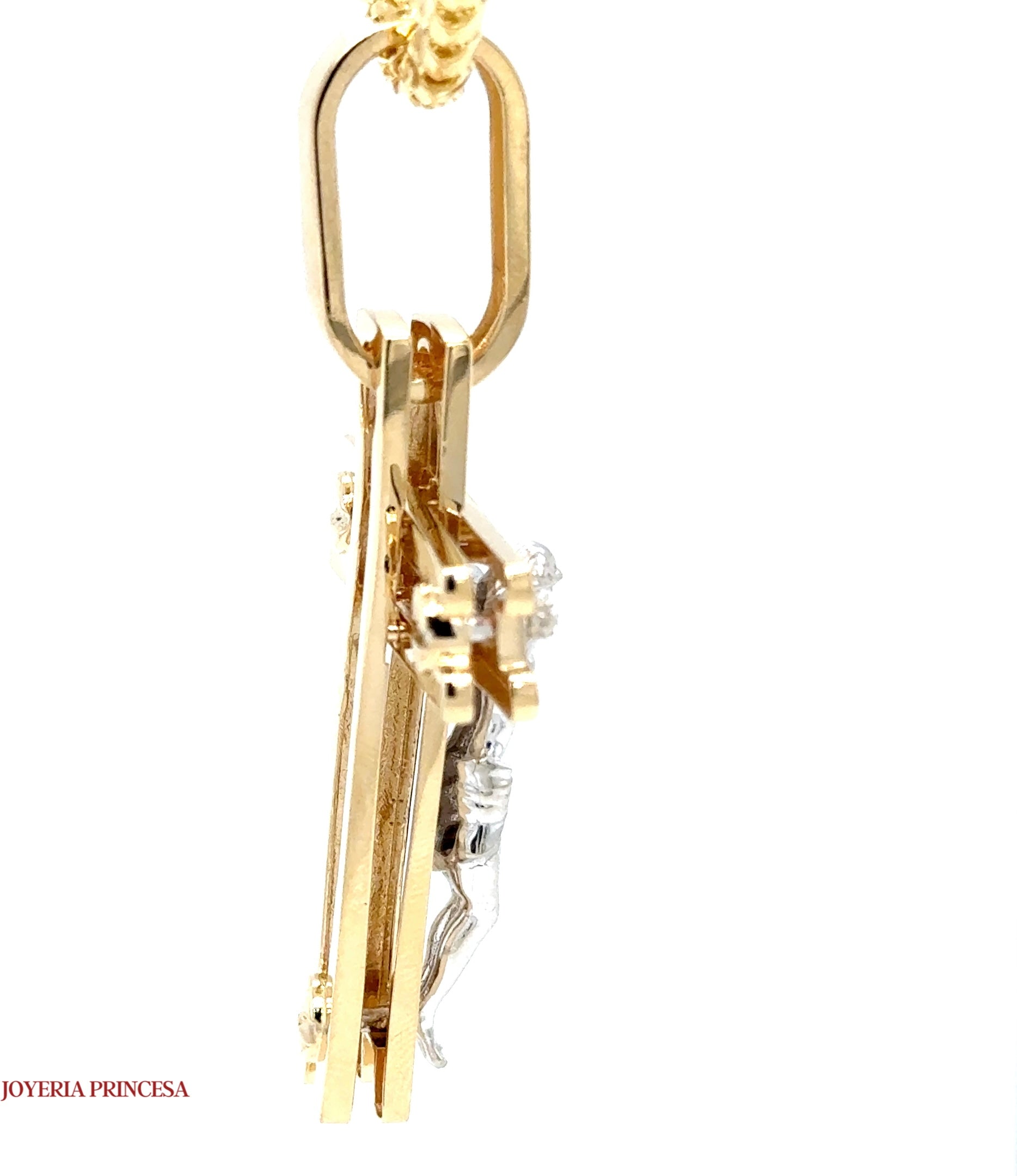 Este exquisito colgante de crucifijo de oro de 14 quilates presenta una detallada figura de Jesús. Una pieza atemporal para cualquier colección.