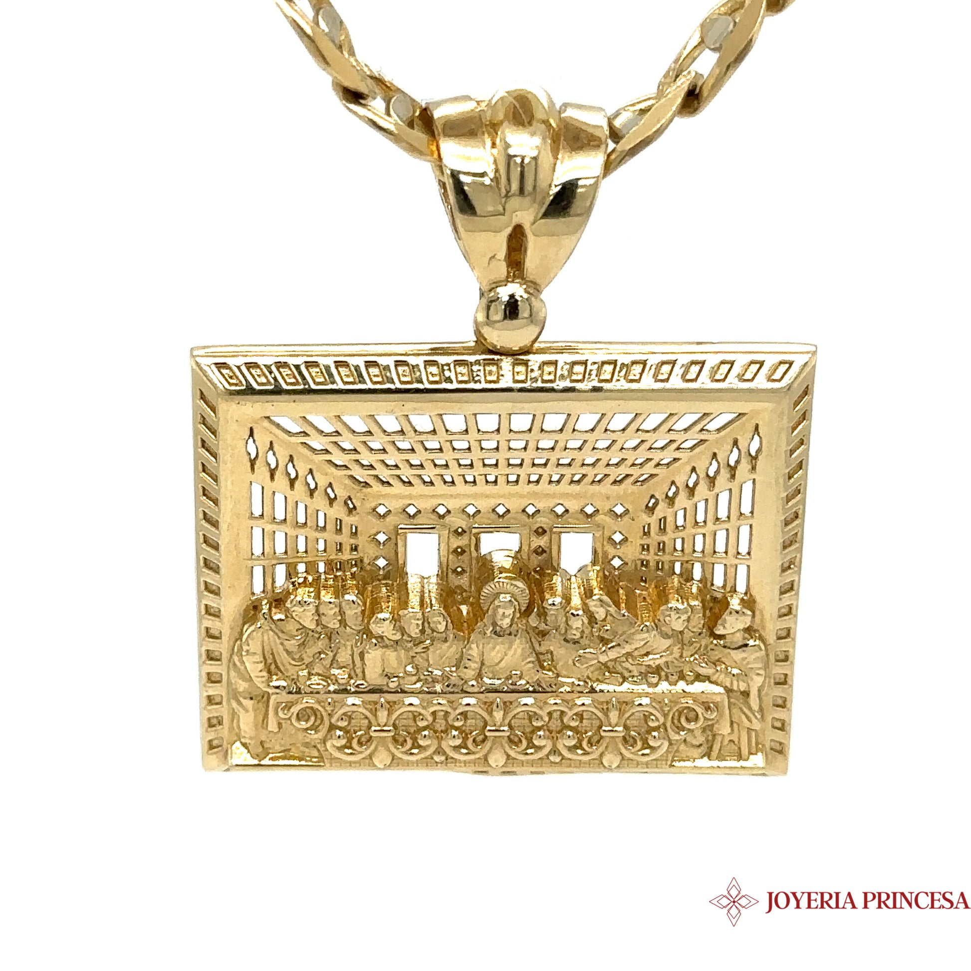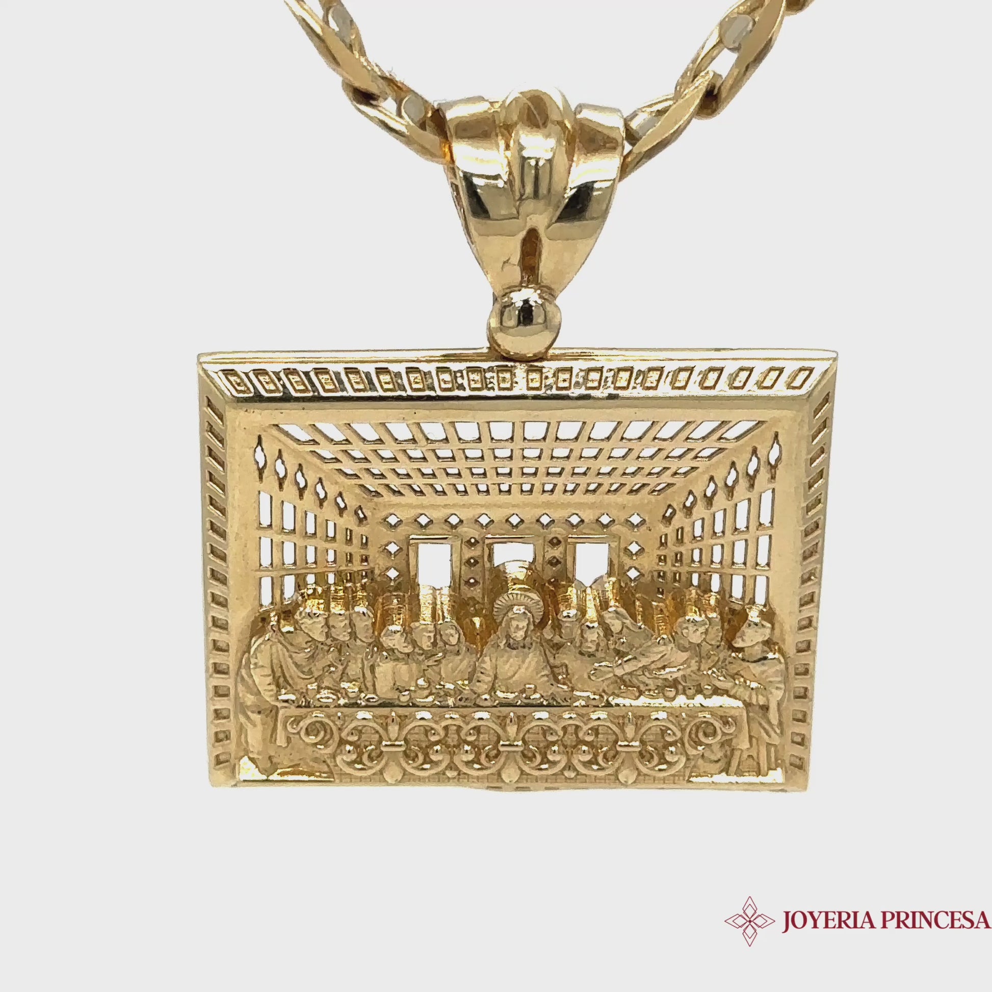 Celebre su fe con este impresionante colgante de la Última Cena de 14 quilates. El intrincado diseño cuenta con una representación de la Última Cena en oro macizo, por lo que es el accesorio perfecto para cualquier ocasión religiosa.