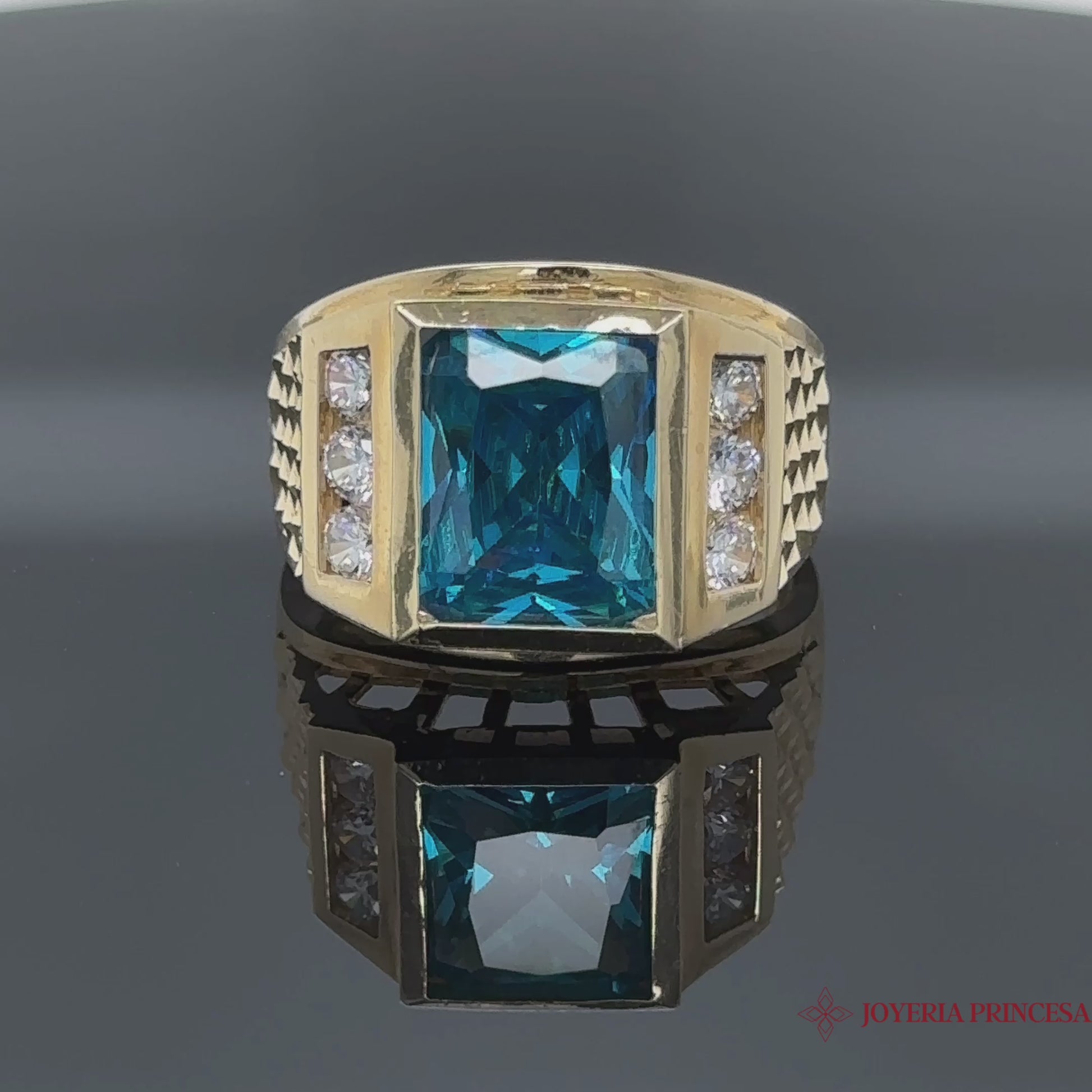 Anillo de oro de 14 quilates con topacio azul para hombre