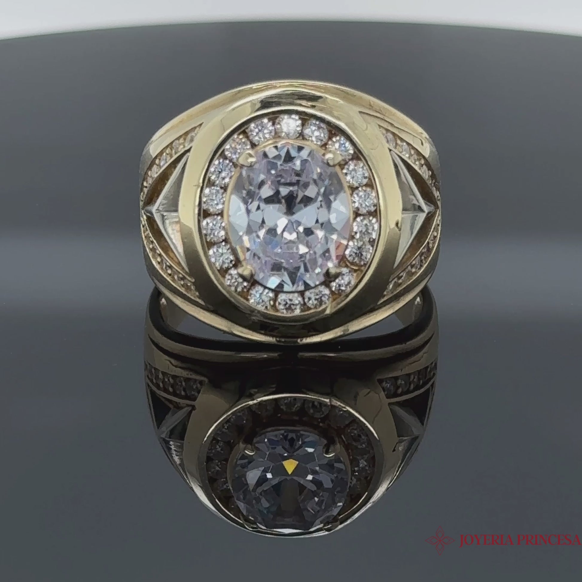 Anillo de oro de 10 quilates para hombre con circonita redonda